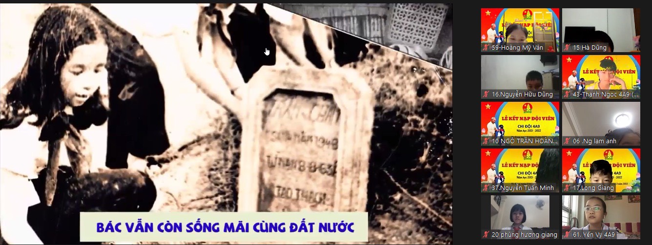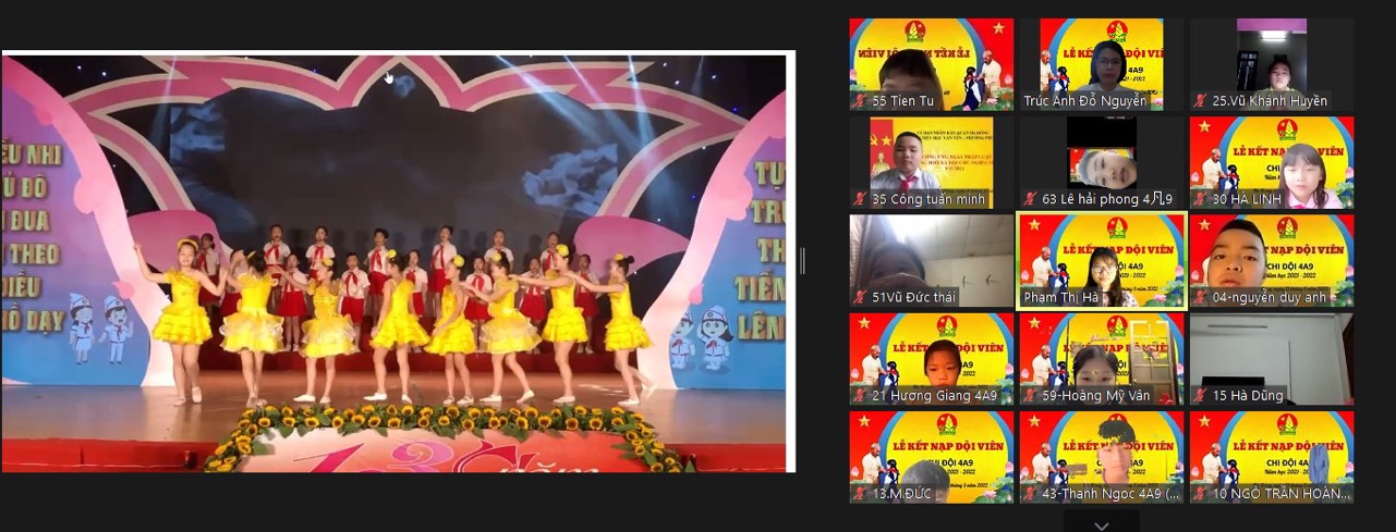 Sau một quá trình phấn đấu học tập và rèn luyện đạo đức, hôm nay các bạn học sinh xuất sắc, chăm ngoan, học giỏi lớp 4 của Liên đội trường Tiểu học Văn Yên được tụ hội về đây tại phòng học rất đặc biệt – phòng học zoom để tham dự Lễ kết nạp Đội viên. Có lẽ đây là năm học đặc biệt nhất trong những năm học mà chúng ta học tập tại trường. Từ đầu khai giảng đến nay chúng ta cũng không còn xa lạ với các chương trình được tổ chức bằng hình thức online từ khai giảng, trung thu, 20/11 hay chương trình chào xuân bởi ảnh hưởng của dịch bệnh Covid-19. Dù không được ở trong không khí cờ hoa rực rỡ, ở lớp, ở sân trường trong buổi lễ kết nạp đội viên giống các anh chị và các bạn như những năm học trước, nhưng cảm xúc của chúng ta vẫn vô cùng xúc động, tự hào và cũng rất vinh dự 300 bạn của các chi đội khối 4: hôm nay sắp được đứng trong hàng ngũ của Đội TNTP Hồ Chí Minh, được đeo trên vai mình một phần của lá cờ Tổ quốc mà biết bao nhiêu máu và nước mắt của các anh hùng, liệt sĩ đã hi sinh để tô thắm cho màu cờ Tổ quốc thanh bình này.