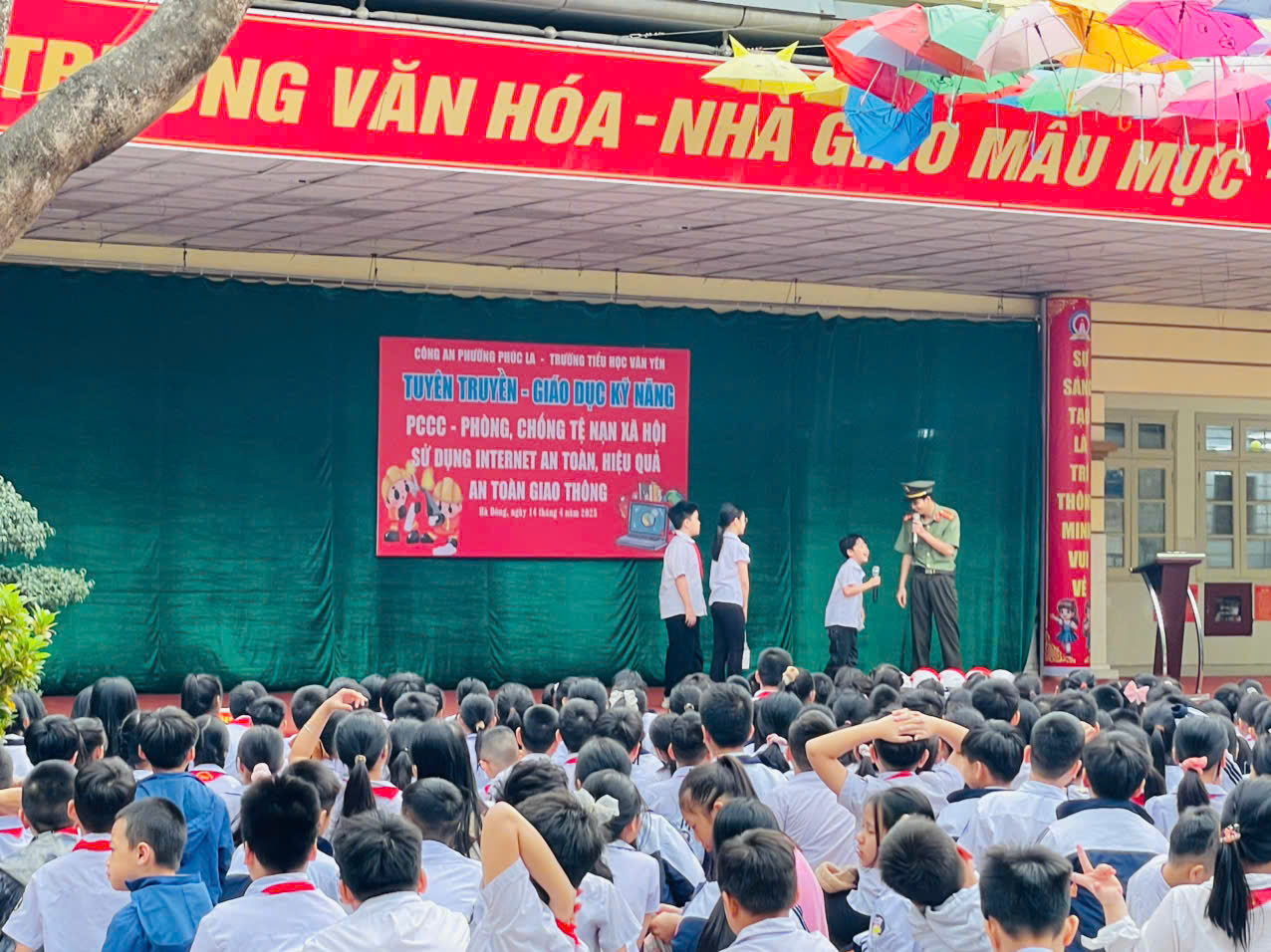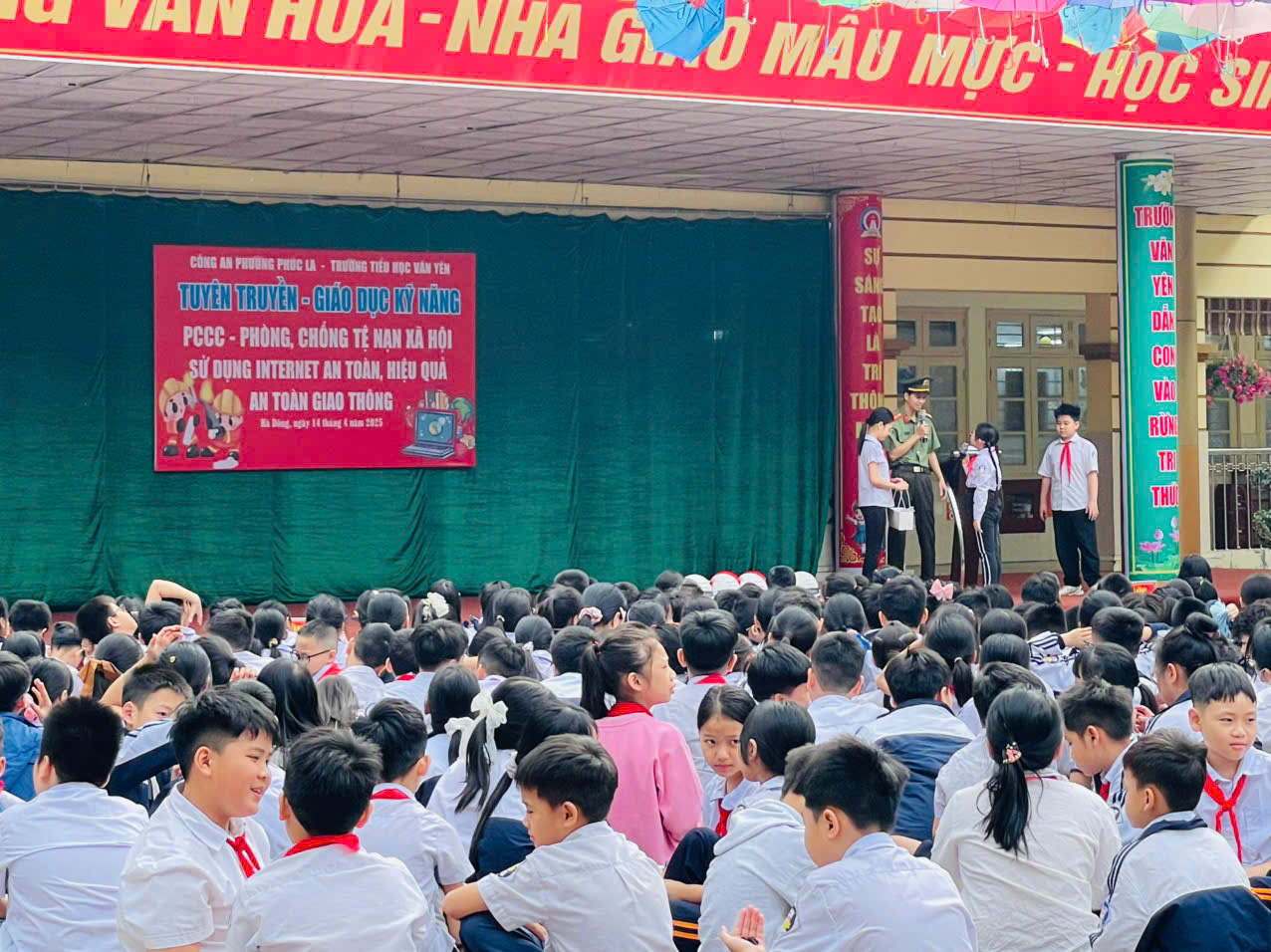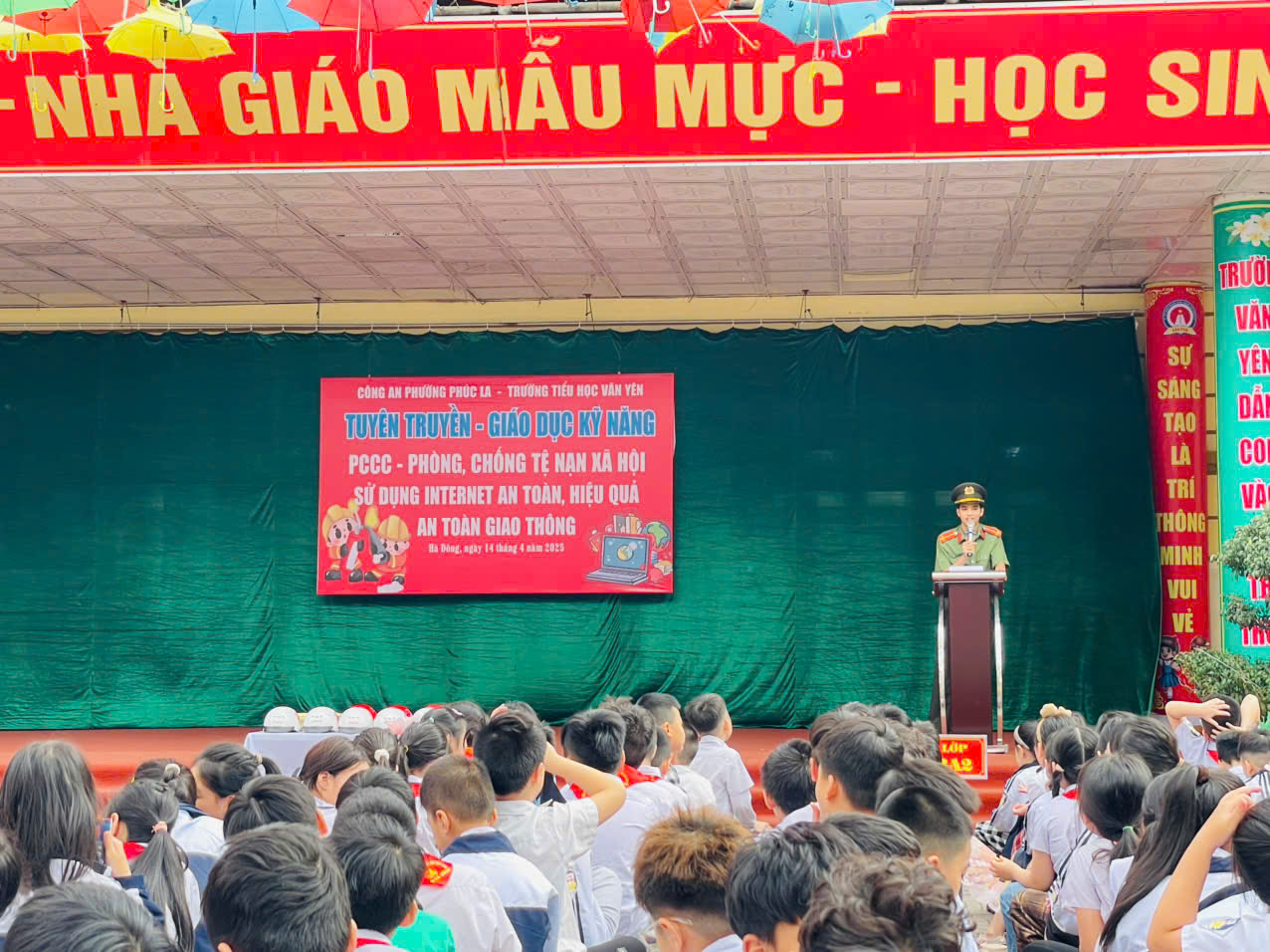 Sáng nay, Thứ Hai ngày 14/4/2025, tại Trường Tiểu học Văn Yên, Công an phường Phúc La phối hợp với nhà trường tổ chức buổi tuyên truyền - giáo dục kỹ năng cho học sinh với nhiều nội dung thiết thực và ý nghĩa.