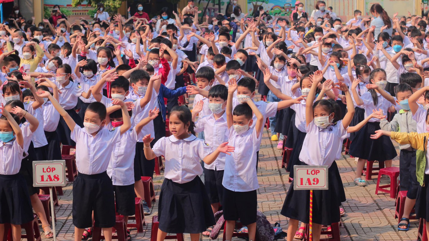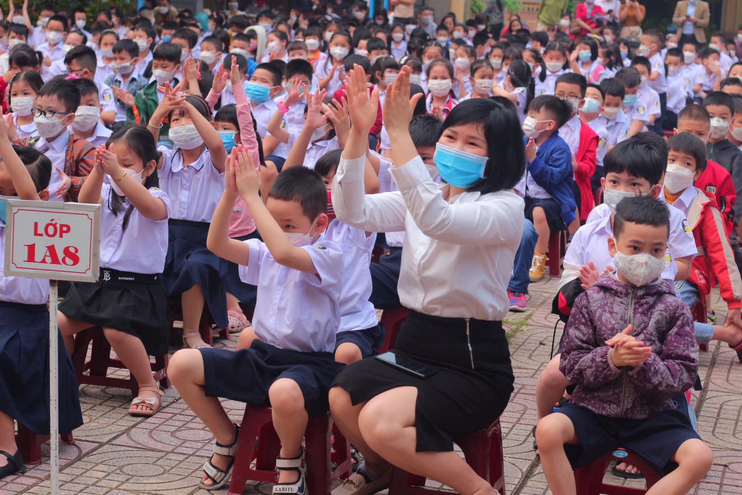 Sau một thời gian gian dài học online, ngày đầu đi học trở lại, phụ huynh rất phấn khởi, học sinh thì vui vẻ, hân hoan, háo hức và để bù đắp khoảng thời gian nghỉ dài và học online. Nhà trường đã đặc biệt tổ chức buổi lễ chào đón học sinh lớp 1 muộn hơn một chút so với giờ vào lớp chung của toàn trường. Buổi chào đón được diễn rất hào hứng, vui vẻ với sự căn dặn của Cô giáo Phương Thị Thìn – Bí thư chi bộ - Hiệu trưởng nhà trường cùng các thầy cô giáo khối 1, đại diện PH học sinh và các em học sinh lớp 1. Buổi chào đón diễn ra ngắn gọn, truyền đạt đủ nội dung tới các em nhỏ nhân ngày tựu trường và không quên đảm bảo an toàn mùa dịch.