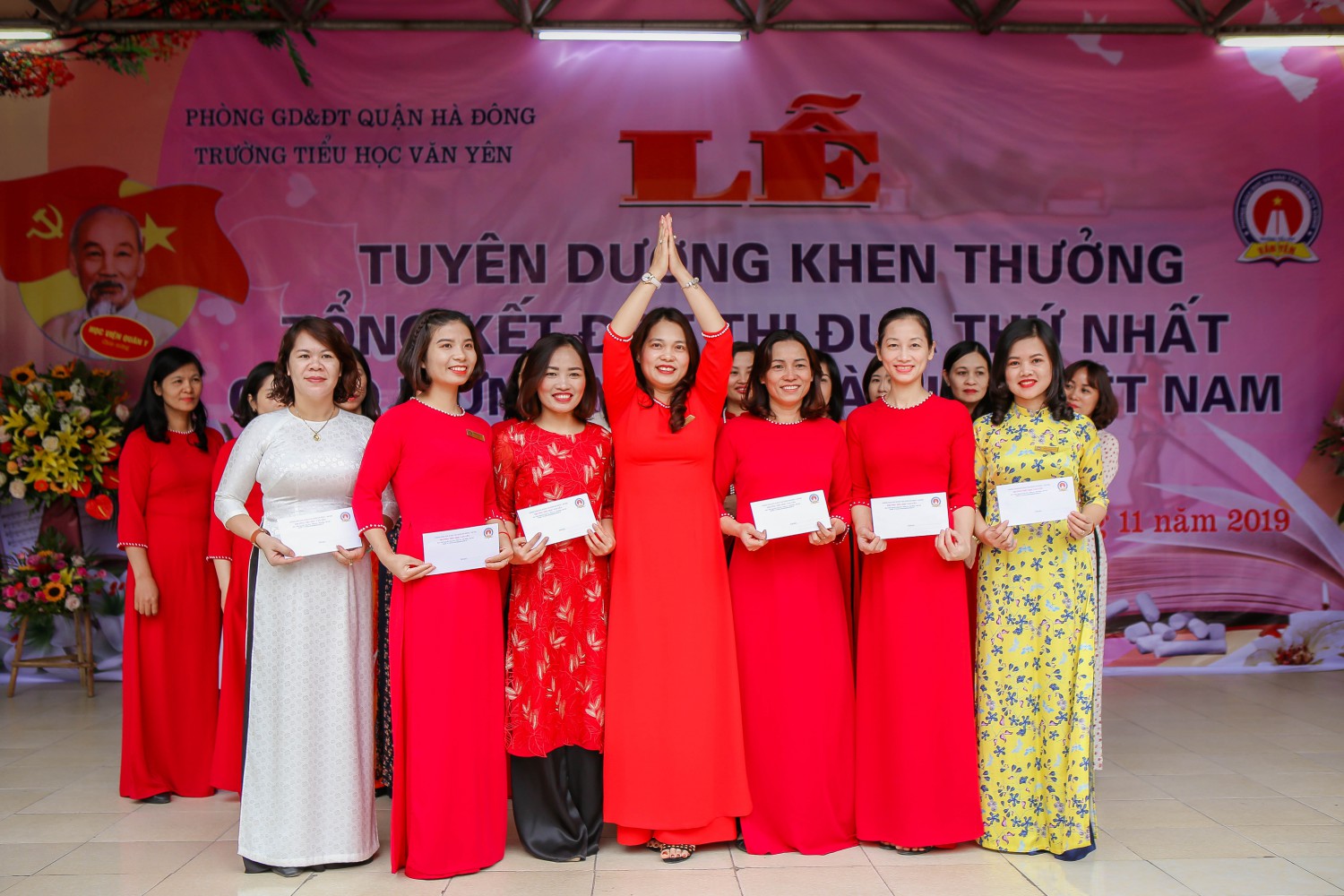 Nhân ngày Nhà giáo Việt Nam 20/11 - Cô giáo Phương Thị Thìn - Bí thư Chi bộ, Hiệu trưởng nhà trường đã vui mừng biểu dương các thầy cô giáo đã có thành tích cao trong đợt Hội giảng. Thành tích đạt được từ phong trào “Dạy tốt - Học tốt” là những bó hoa tươi thắm nở rộ trong vườn hoa chào mừng ngày Nhà giáo Việt Nam của thầy trò trường Tiểu học Văn Yên!
