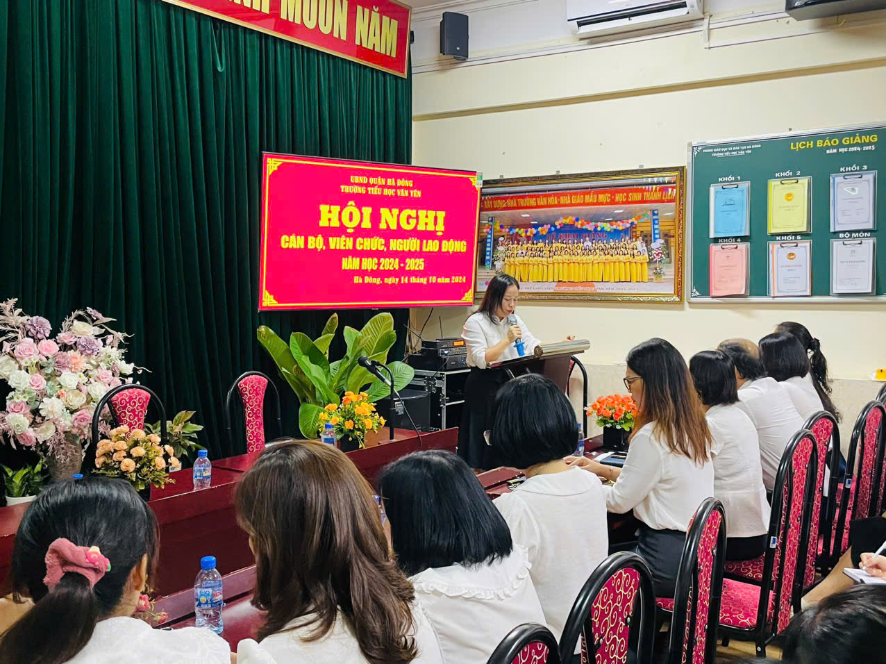 Chiều ngày 14-10-2024, Trường TH Văn Yên đã tổ chức thành công hội nghị cán bộ, viên chức, người lao động năm học 2024-2025. Hội nghị được tổ chức trong không khí trang trọng, với sự có mặt 100% cán bộ , giáo viên, nhân viên nhà trường.