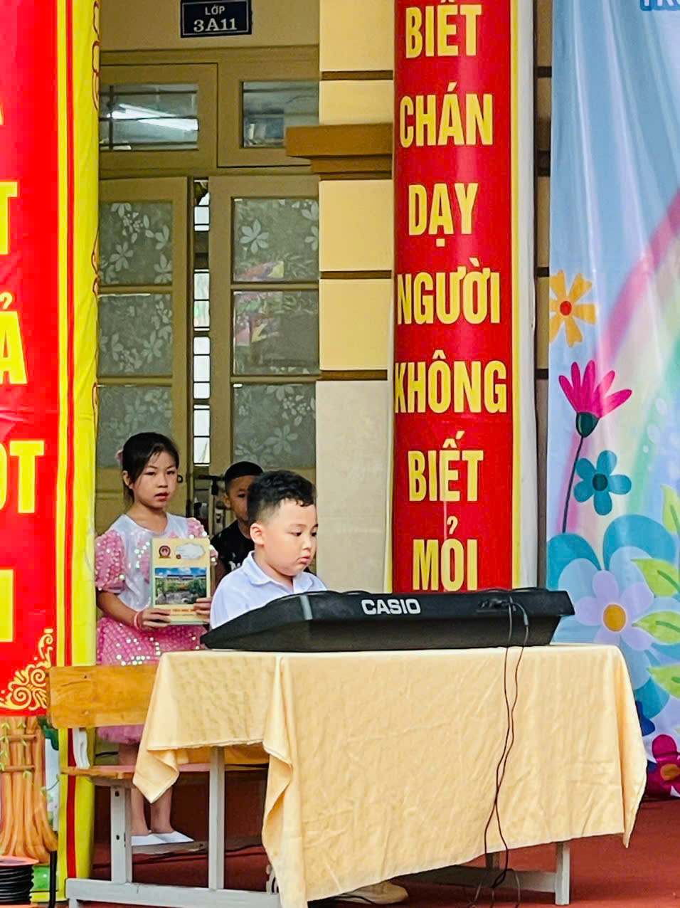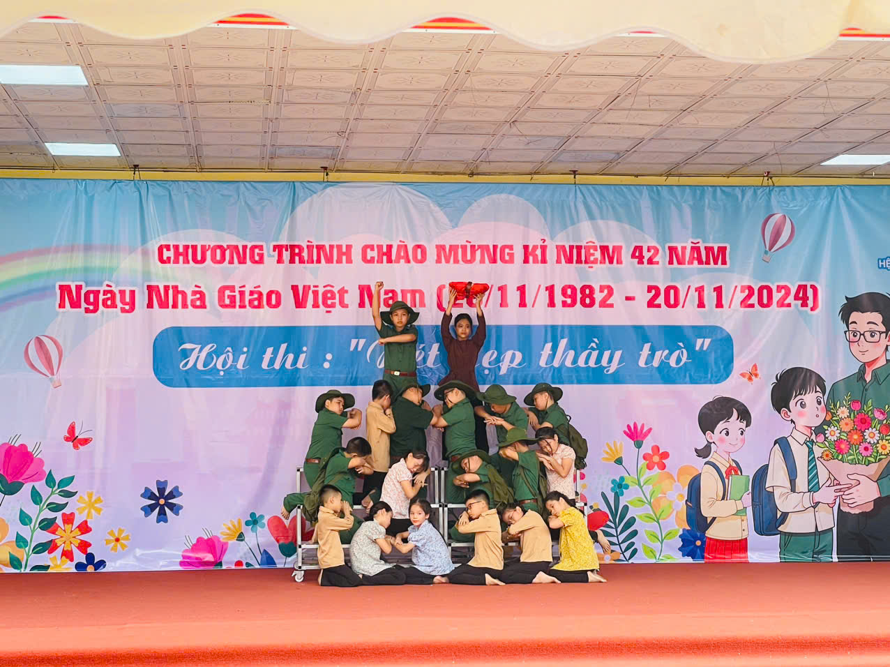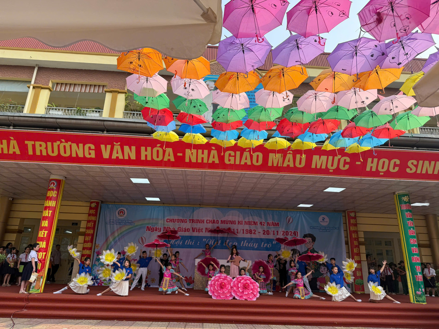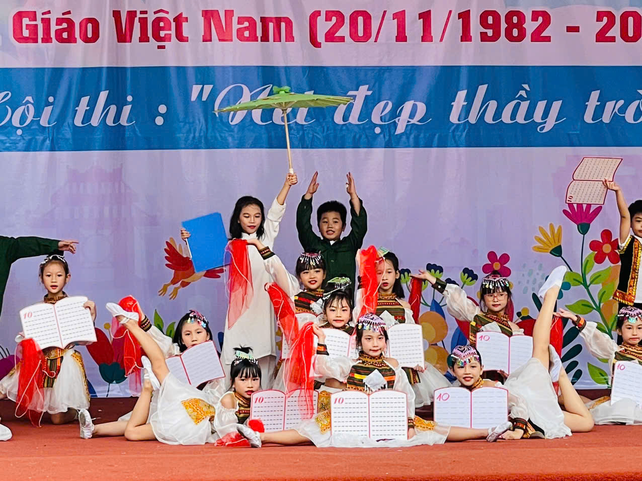 Lễ khai mạc được diễn ra với những tiết mục văn nghệ đầy ý nghĩa và sôi động của các em học sinh khối lớp 4, lớp 5. Các em đã mang đến những màn biểu diễn tài năng, thể hiện tình cảm yêu mến thầy cô và niềm tự hào về truyền thống tốt đẹp của ngành giáo dục. Những điệu múa, bài hát, những câu chuyện về tình thầy trò đã khiến không khí lễ hội trở nên ấm áp và xúc động.