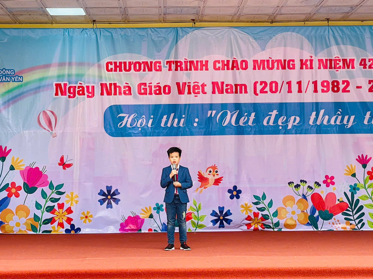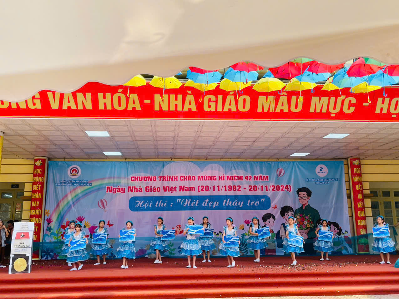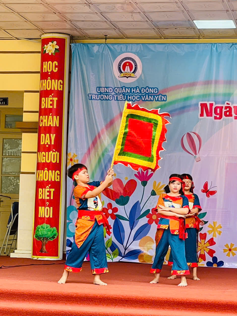 Lễ khai mạc được diễn ra với những tiết mục văn nghệ đầy ý nghĩa và sôi động của các em học sinh khối lớp 4, lớp 5. Các em đã mang đến những màn biểu diễn tài năng, thể hiện tình cảm yêu mến thầy cô và niềm tự hào về truyền thống tốt đẹp của ngành giáo dục. Những điệu múa, bài hát, những câu chuyện về tình thầy trò đã khiến không khí lễ hội trở nên ấm áp và xúc động.