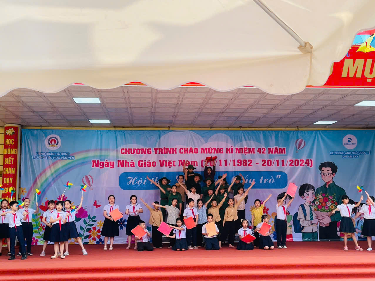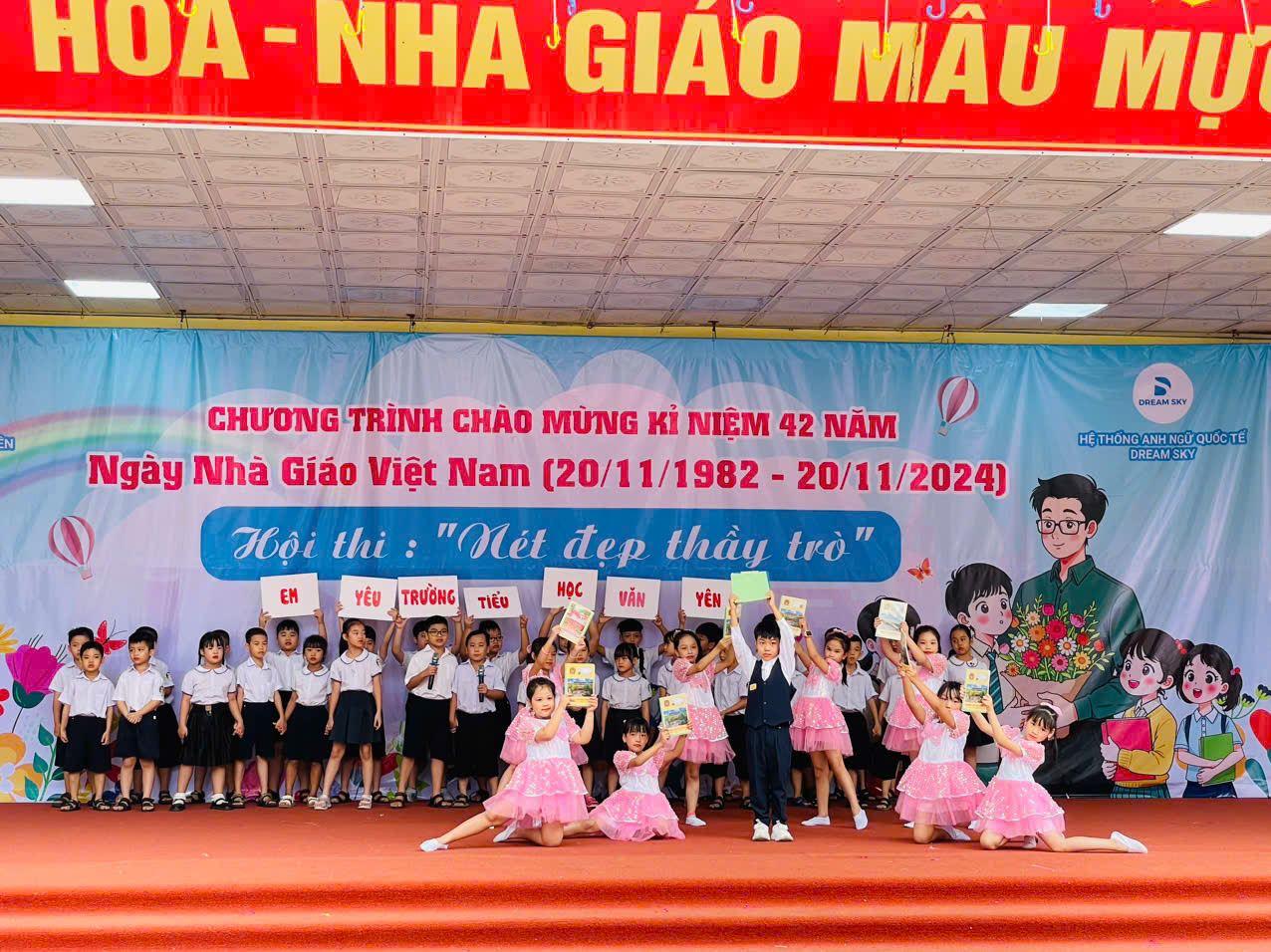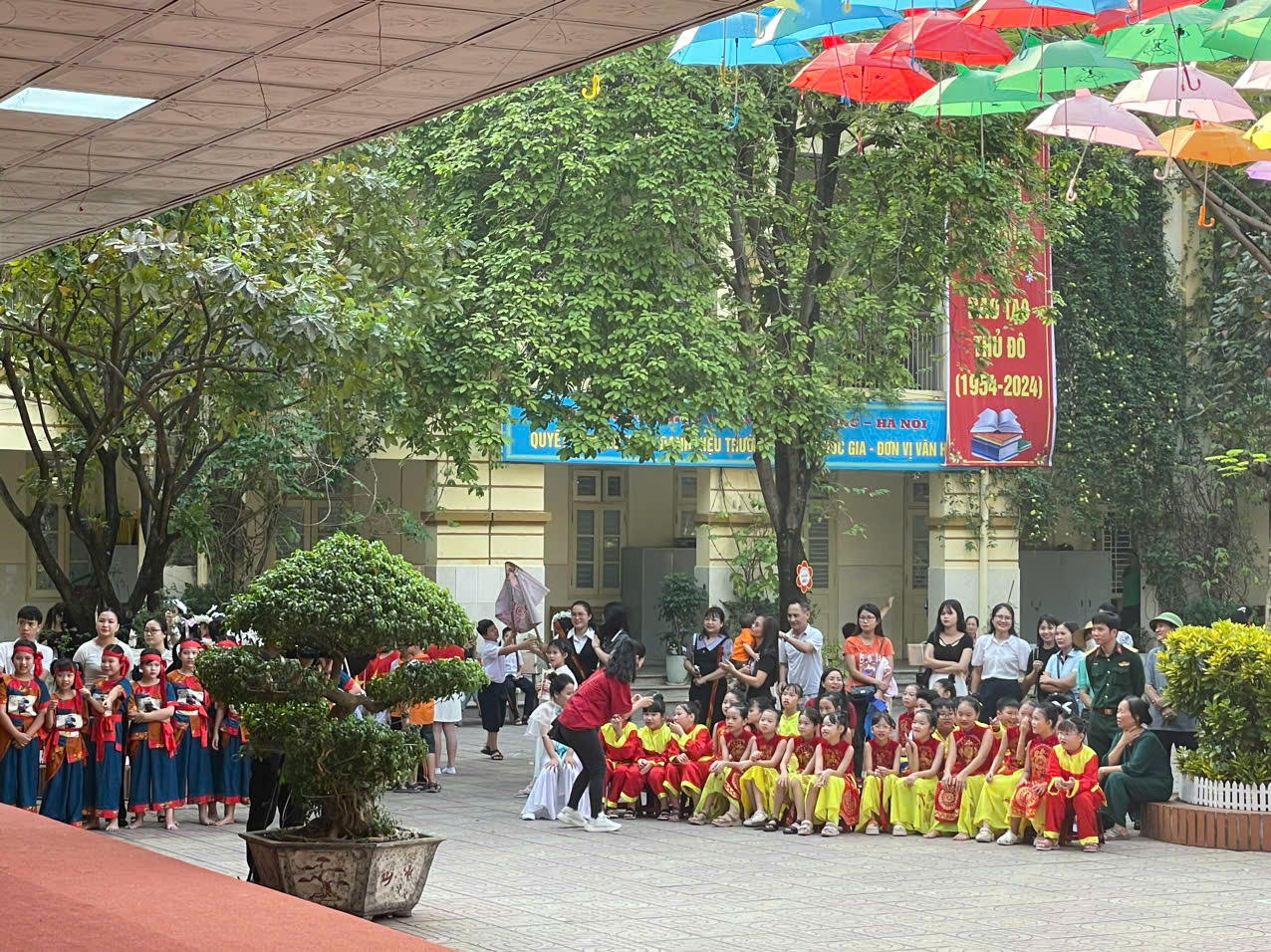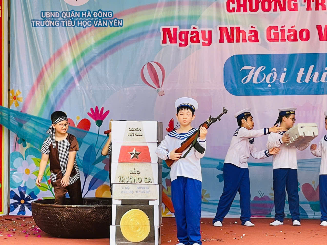 Lễ khai mạc được diễn ra với những tiết mục văn nghệ đầy ý nghĩa và sôi động của các em học sinh khối lớp 4, lớp 5. Các em đã mang đến những màn biểu diễn tài năng, thể hiện tình cảm yêu mến thầy cô và niềm tự hào về truyền thống tốt đẹp của ngành giáo dục. Những điệu múa, bài hát, những câu chuyện về tình thầy trò đã khiến không khí lễ hội trở nên ấm áp và xúc động.
