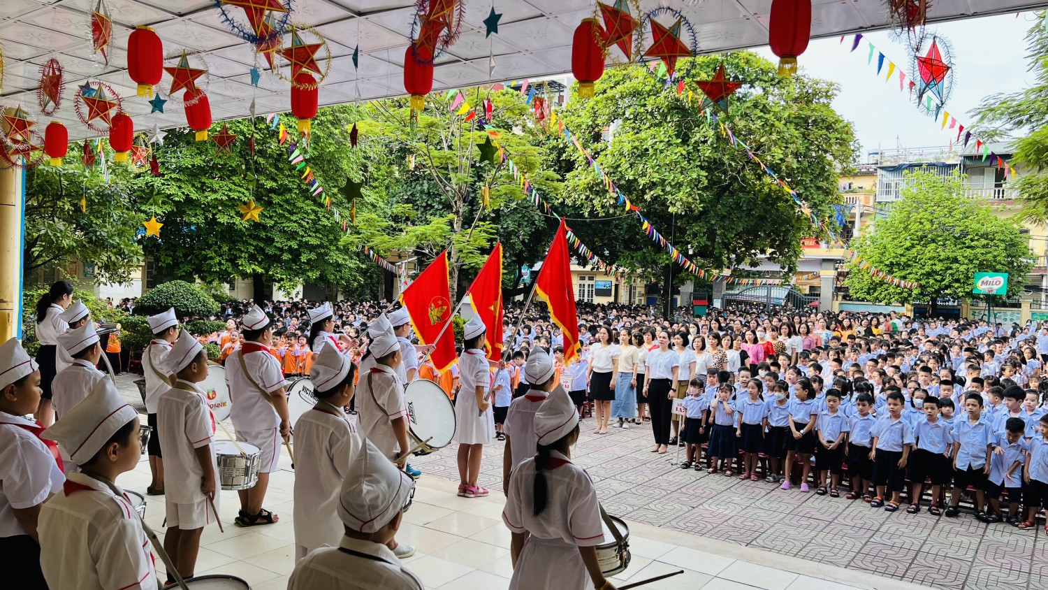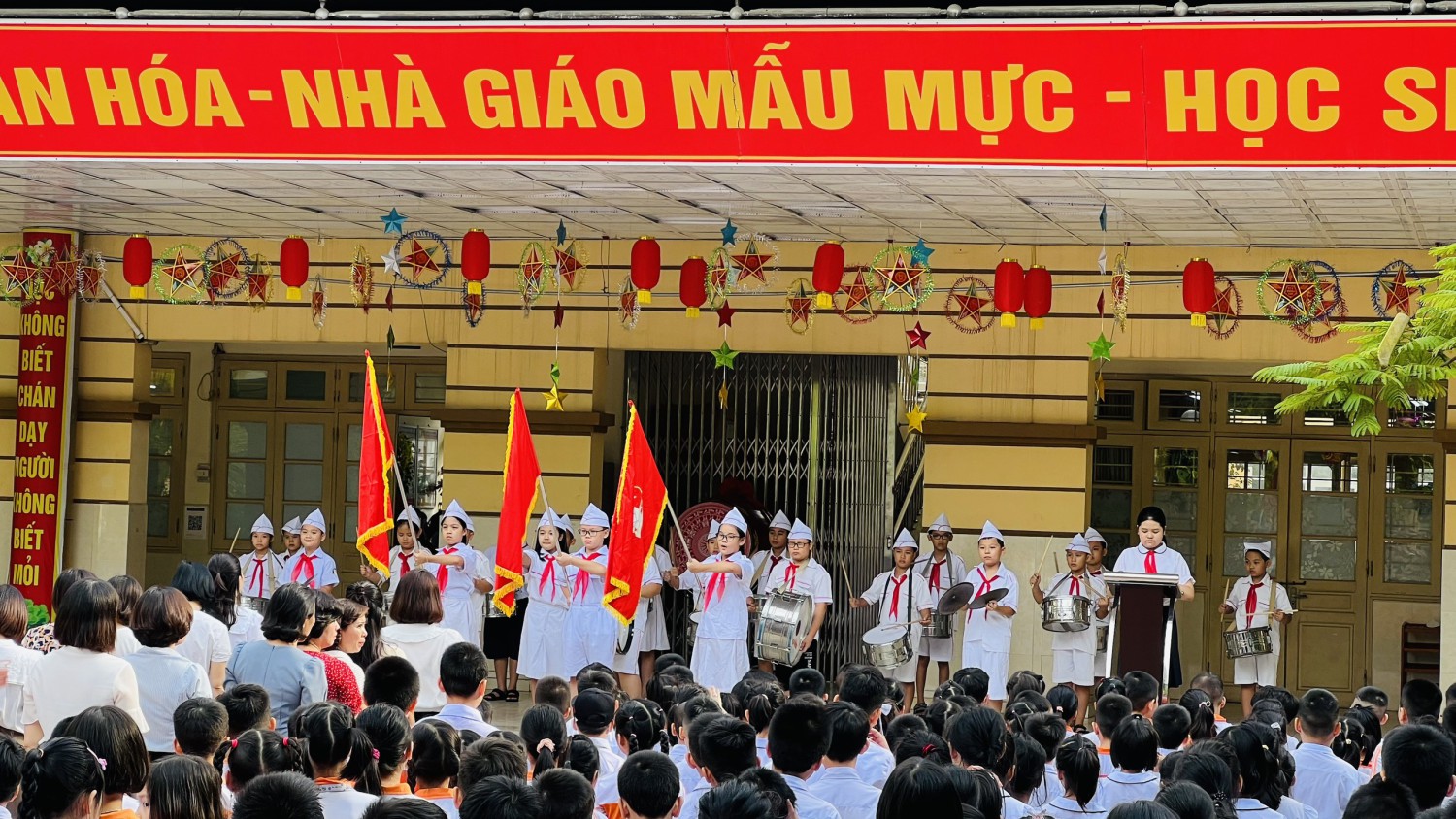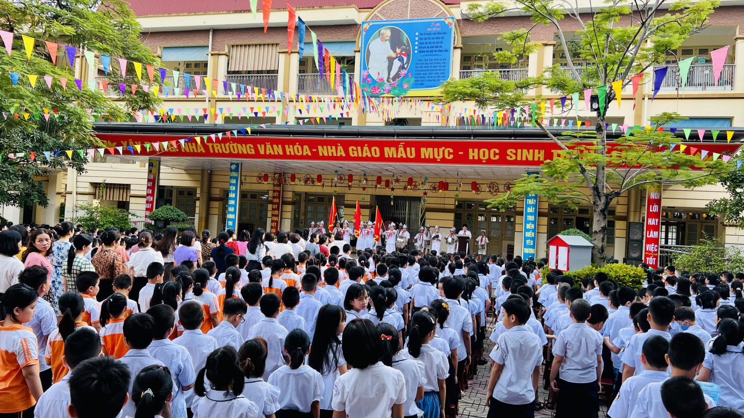 Sáng nay, ngày 12 tháng 9 năm 2022 Trường TH Văn yên đã có buổi chào cờ đầu tiên của năm học 2022 – 2023. Các em học sinh lớp 1 được làm quen với nghi thức chào cờ. Trong lễ chào cờ, cô giáo Phương Thị Thìn - Hiêu trưởng nhà trường đã chia sẻ với các bạn học sinh niềm vui của những ngày đầu năm học, điểm lại những hoạt động của tuần qua và những nội dung của tuần mới. Chúc các em có một năm học thật nhiều năng lượng tích cực và học tập thật tốt.