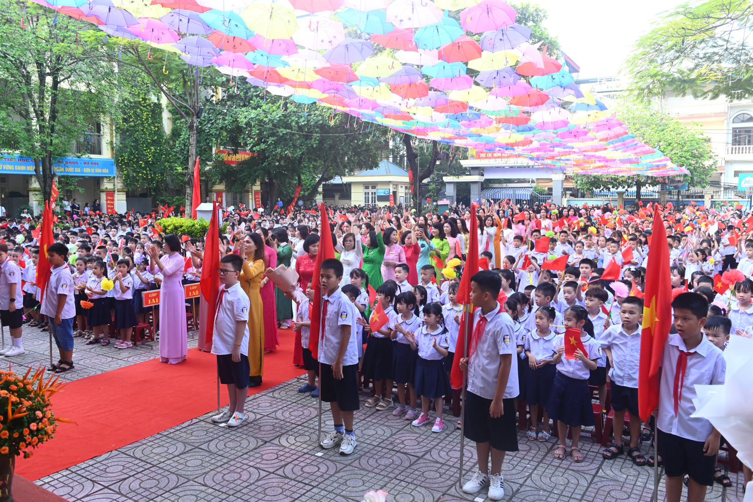 Buổi lễ bắt đầu bằng nghi thức chào cờ trang nghiêm, với quốc ca vang lên, đánh dấu sự khởi đầu của một năm học mới.