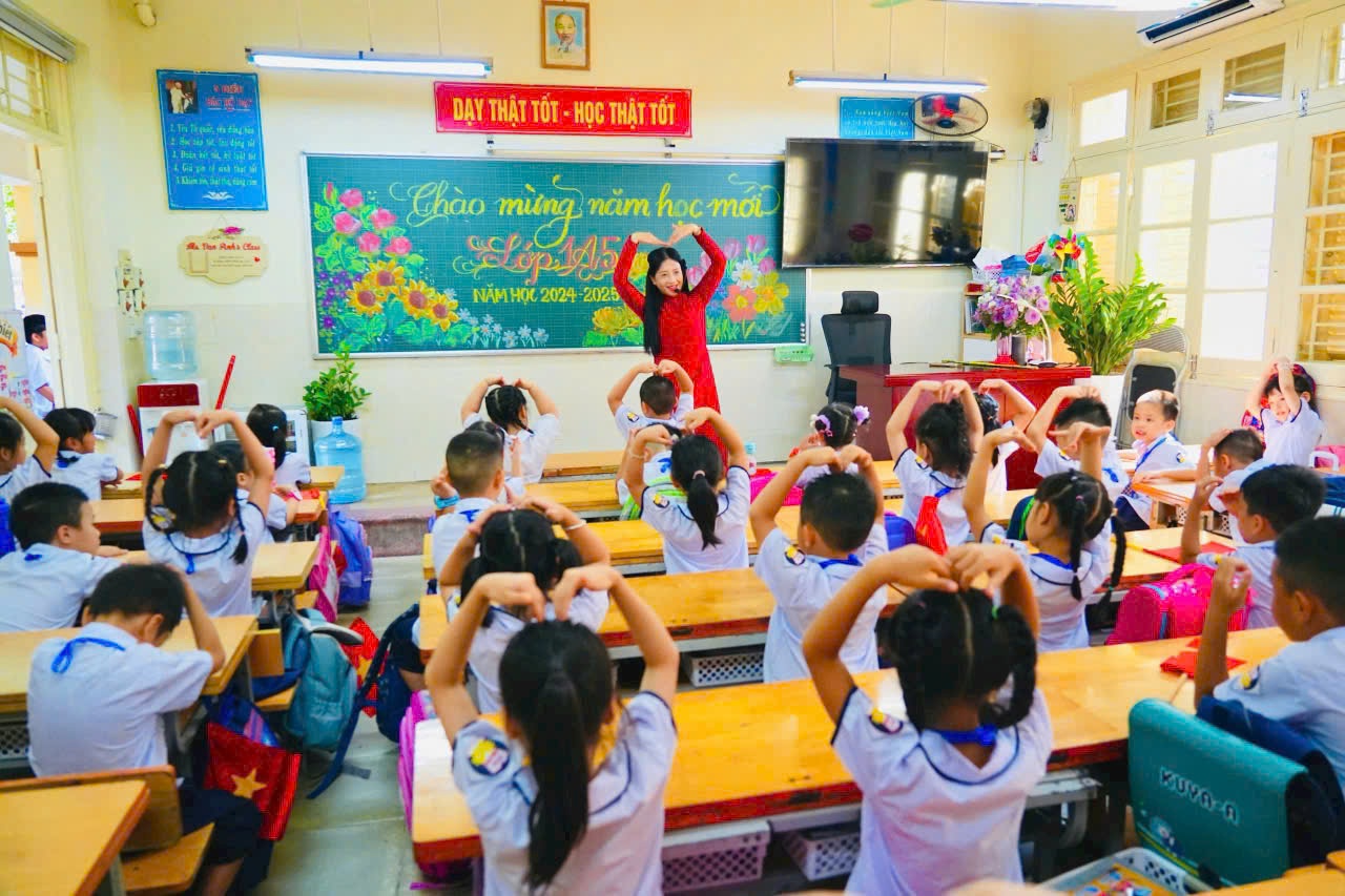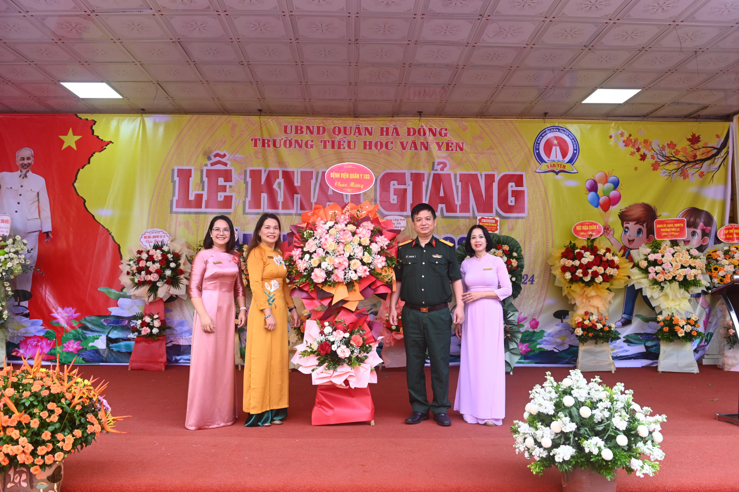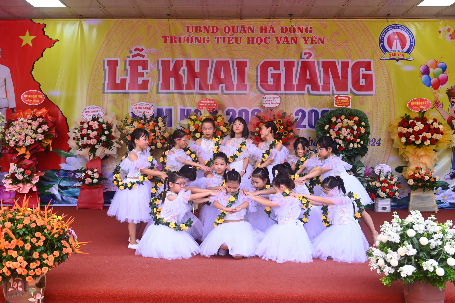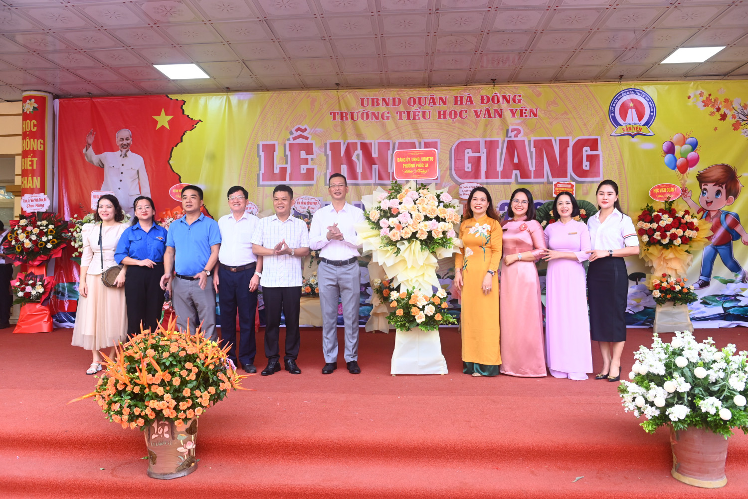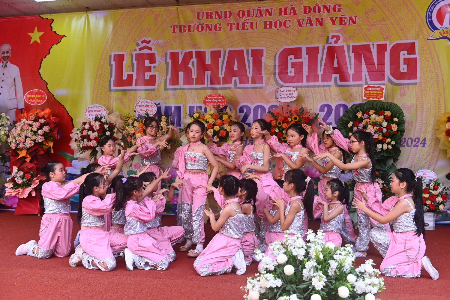 Lễ khai giảng năm học 2024-2025 tại trường Tiểu học Văn Yên, quận Hà Đông, đã diễn ra trong không khí hân hoan và trang trọng. Sáng sớm ngày 5 tháng 9, các thầy cô giáo, phụ huynh và học sinh đã có mặt đông đủ tại sân trường, nơi được trang trí lộng lẫy với cờ hoa và băng rôn chúc mừng năm học mới. Trong ánh nắng vàng rực rỡ, các em học sinh, đặc biệt là các bạn lớp 1, bước vào sân trường với nụ cười rạng rỡ và những bộ đồng phục mới tinh.