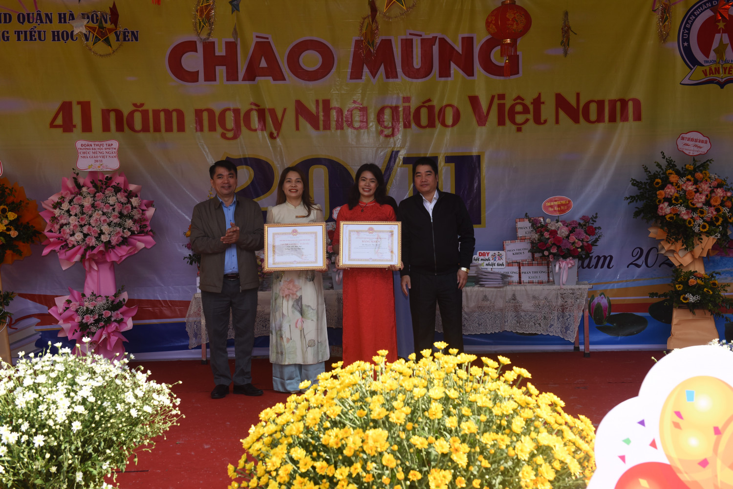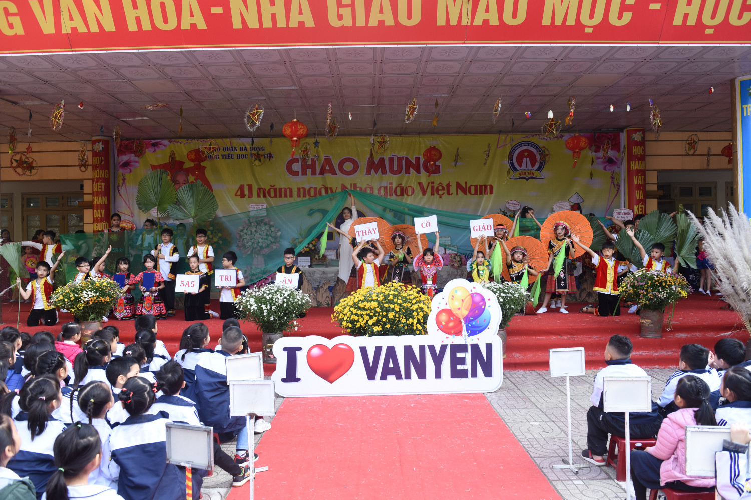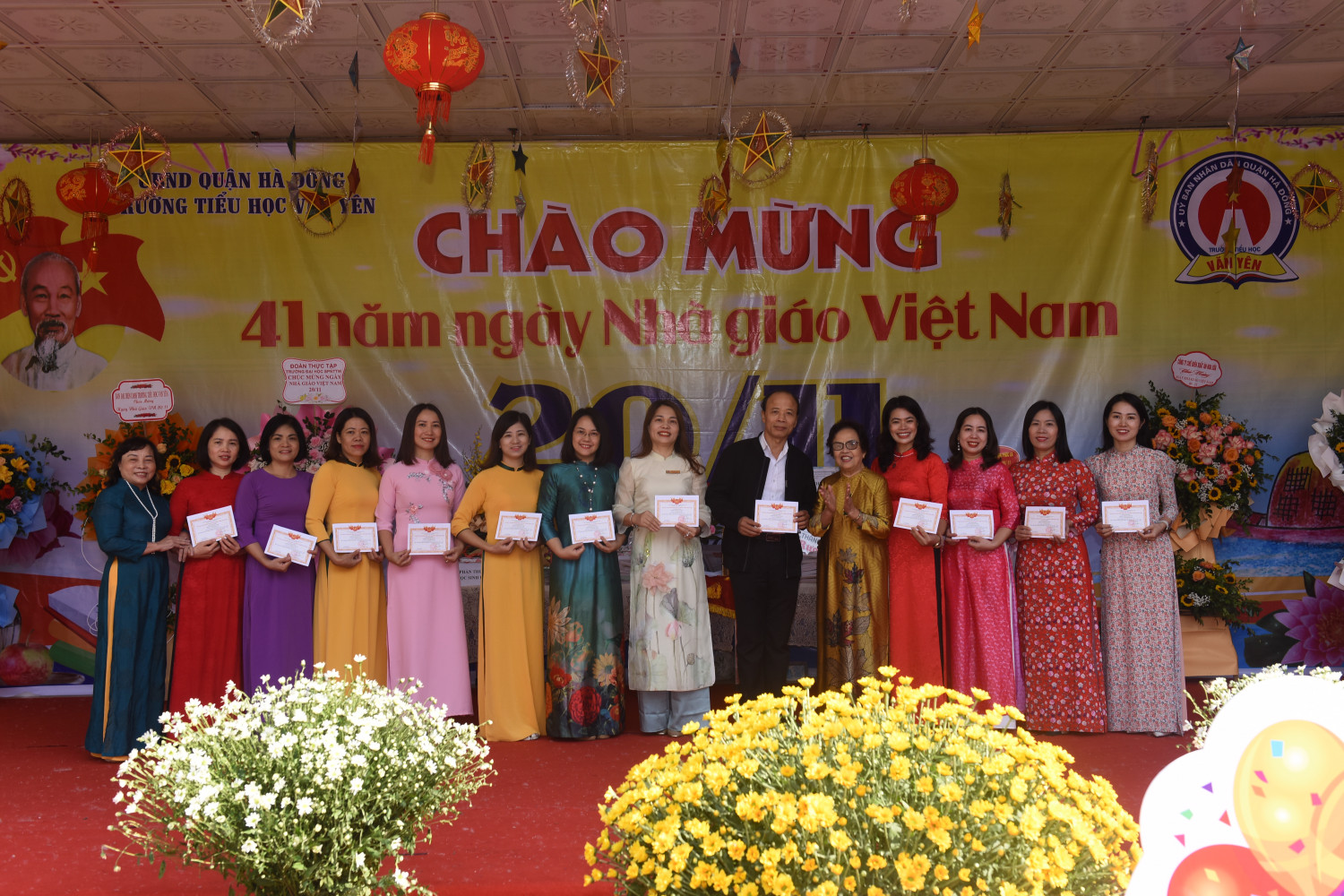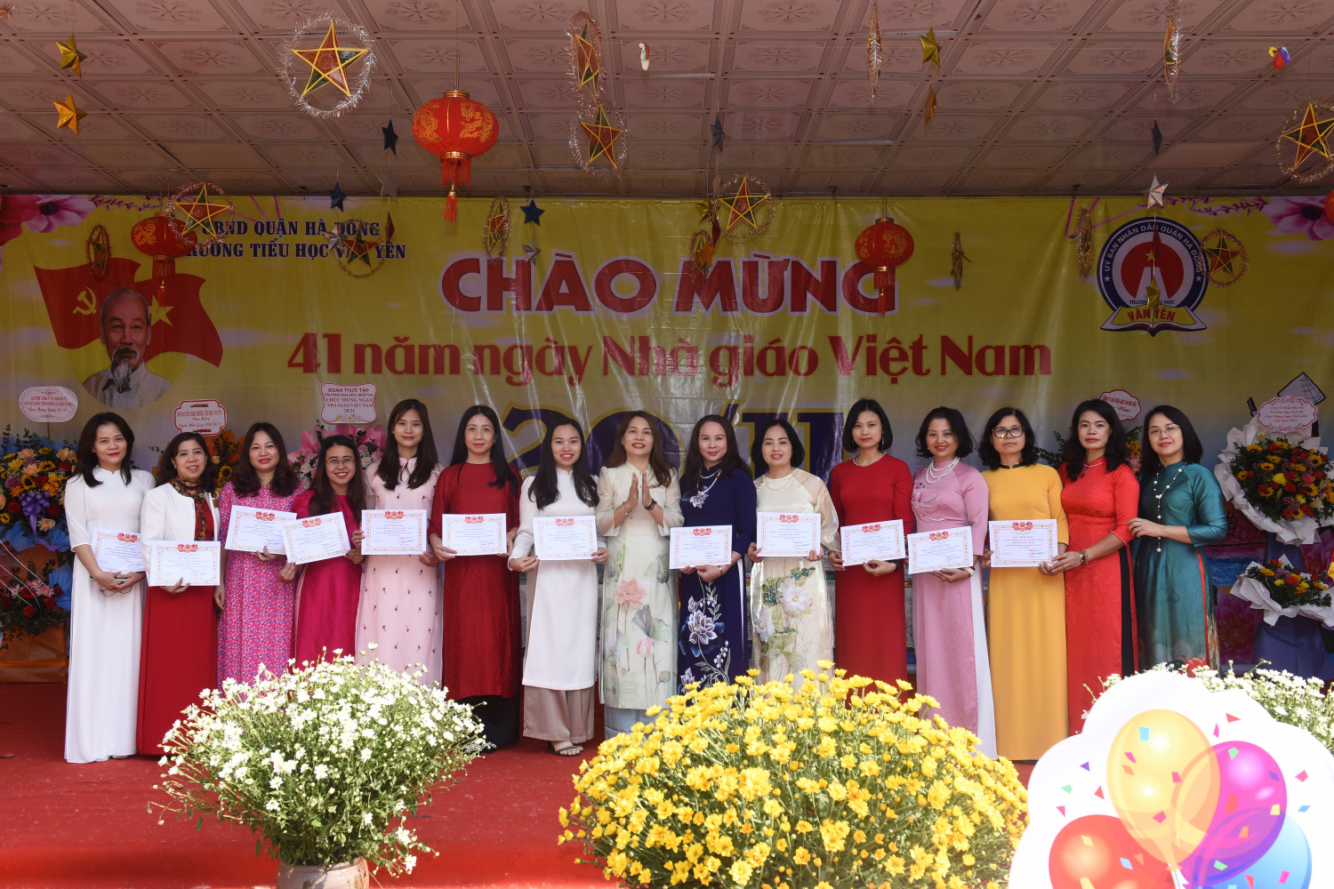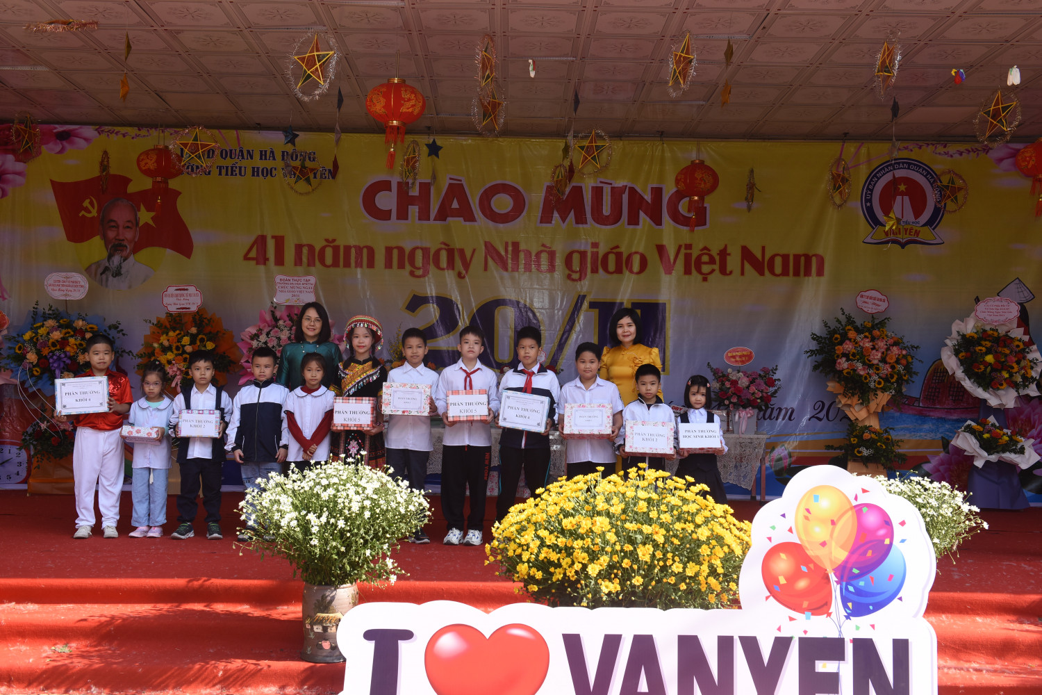 Trong không khí phấn khởi của các thế hệ học sinh cả nước hướng về ngày Nhà giáo Việt Nam 20/11, hôm nay Trường Tiểu học Văn Yên trang trọng tổ chức Lễ kỉ niệm 41 năm ngày Nhà giáo Việt Nam bằng việc làm thiết thực: Tri ân, tuyên dương khen thưởng các tập thể, cá nhân tiêu biểu trong đợt thi đua dài ngày. Một buổi Lễ đã trở thành truyền thống tốt đẹp, là dịp để chúng ta tôn vinh, ghi nhận và biểu dương những thành tích xuất sắc của các tập thể, cá nhân trong phong trào thi đua dạy tốt - học tốt của nhà trường.