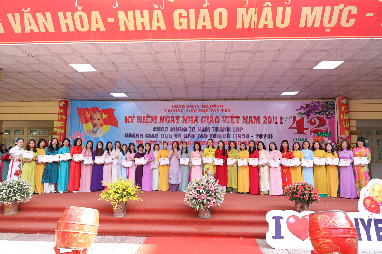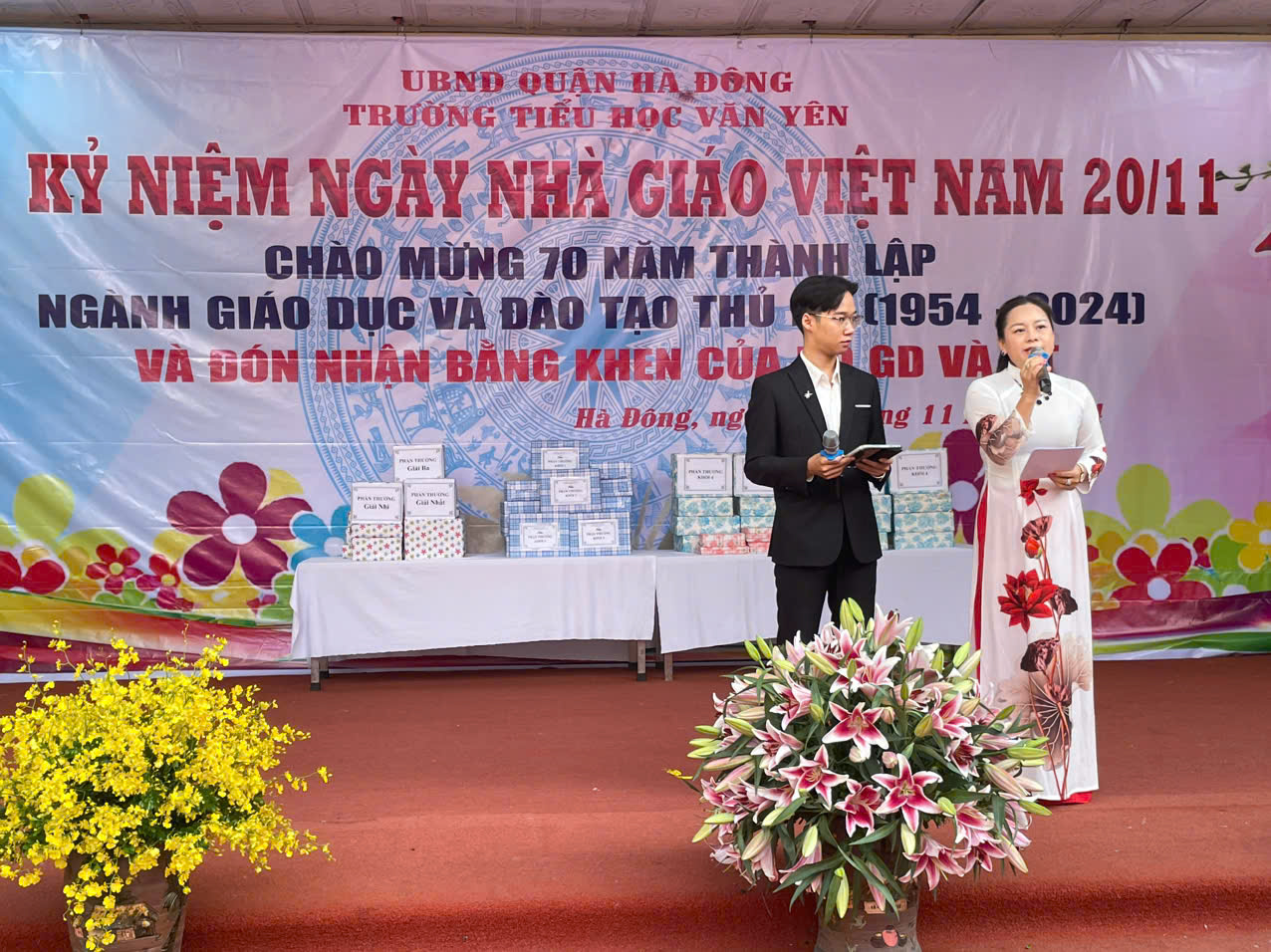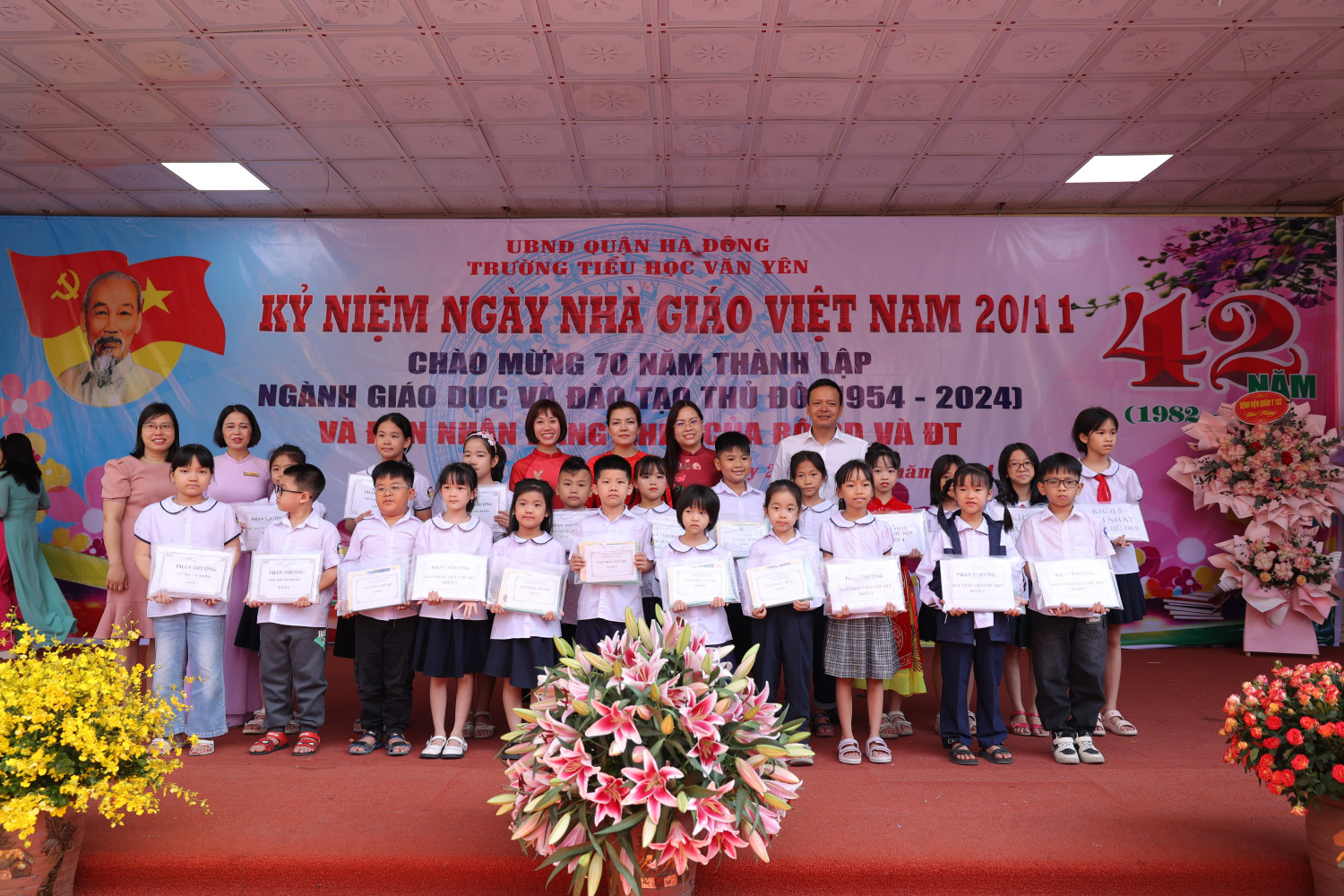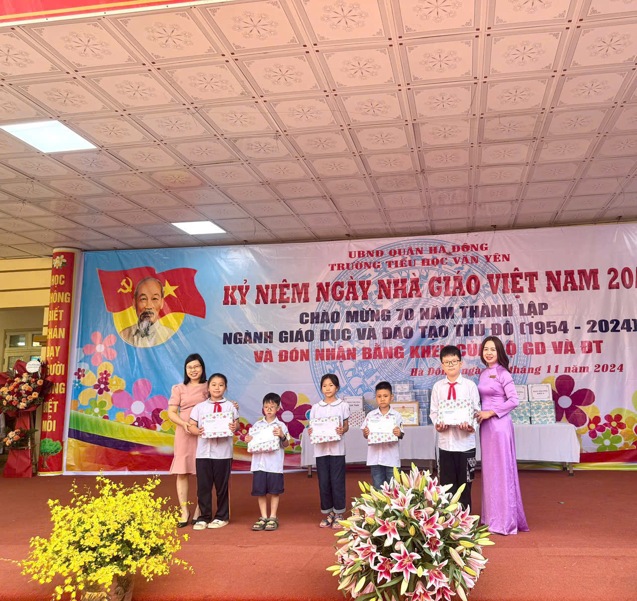 Sáng ngày 20/11, Trường Tiểu học Văn Yên long trọng tổ chức lễ mít tinh chào mừng ngày Nhà giáo Việt Nam. Đây là dịp để toàn thể cán bộ, giáo viên, học sinh và phụ huynh bày tỏ lòng biết ơn sâu sắc đối với công lao dạy dỗ của các thầy cô giáo.
