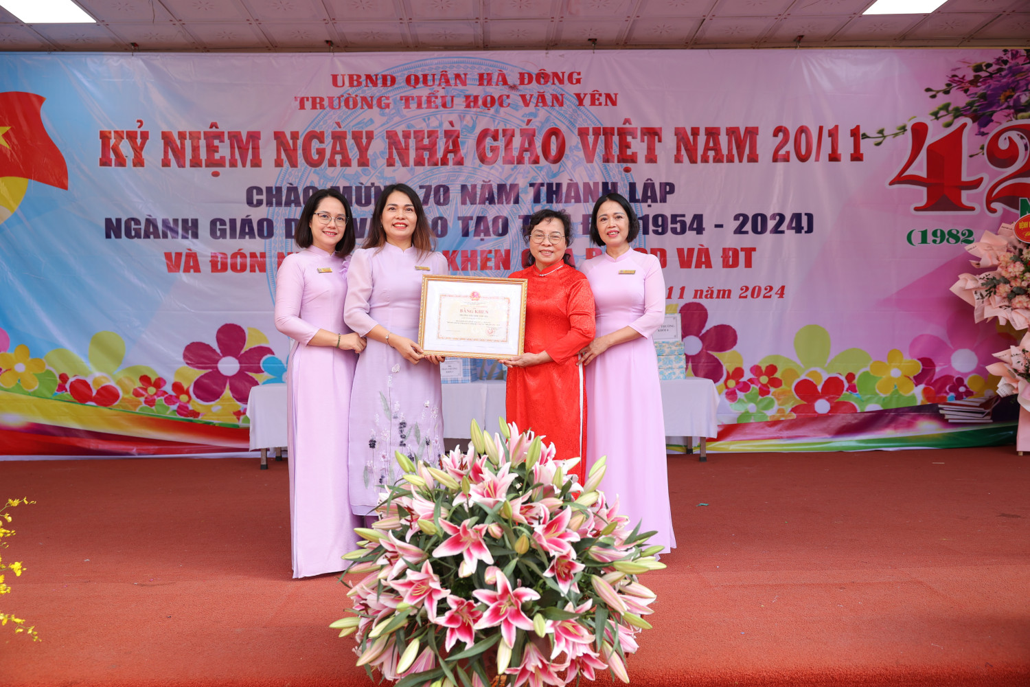 Cũng trong buổi lễ, trường Tiểu học Văn Yên vinh dự đón nhận bằng khen của Bộ Giáo dục và Đào tạo vì những thành tích xuất sắc trong công tác giảng dạy và tổ chức các hoạt động giáo dục.