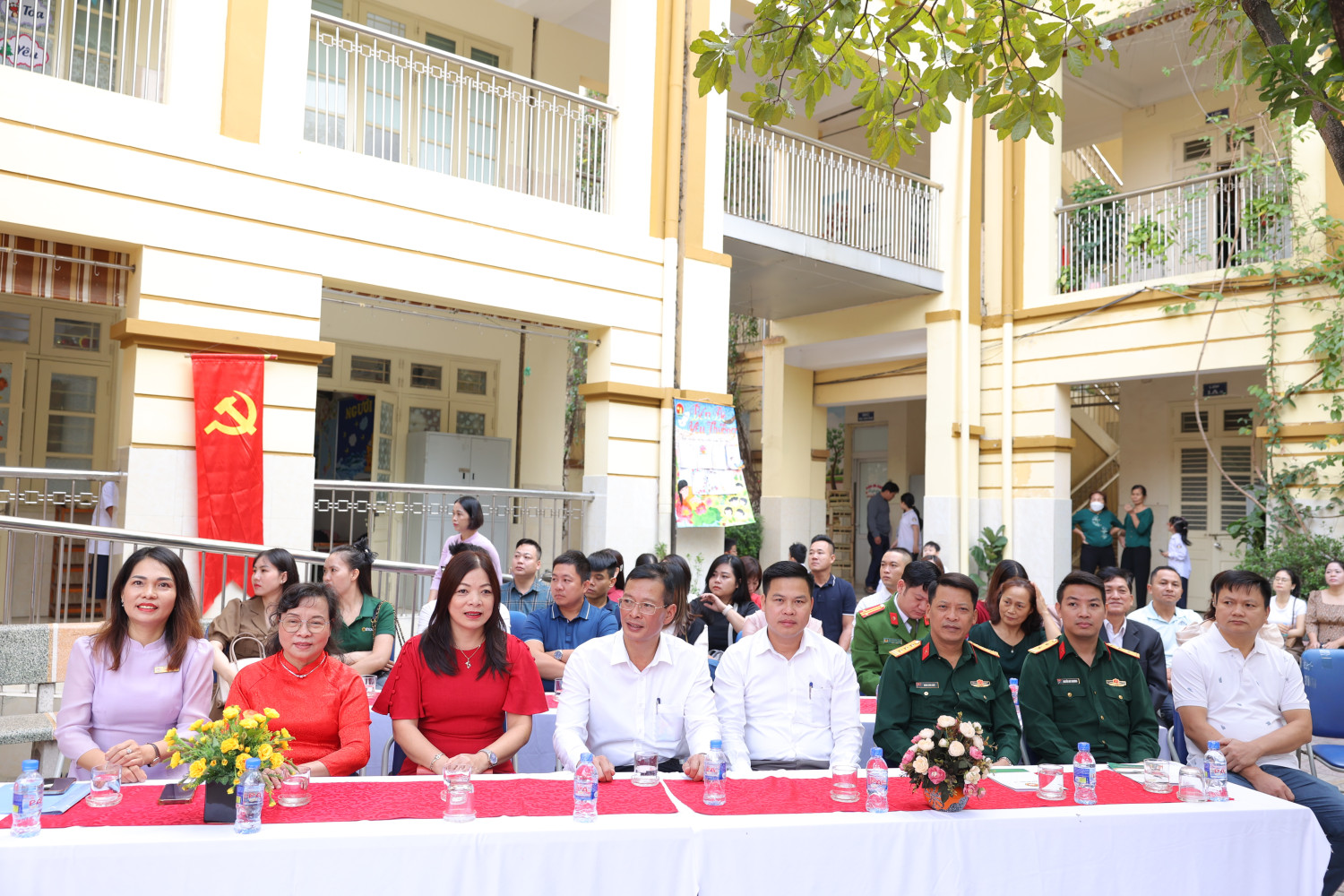 Buổi lễ với sự tham dự của các cựu giáo viên, đại diện UBND Phường, đại diện học viên quân y, bệnh viện 103, đại diện hội CMHS các lớp, 100 % CBCNV và học sinh nhà trường.