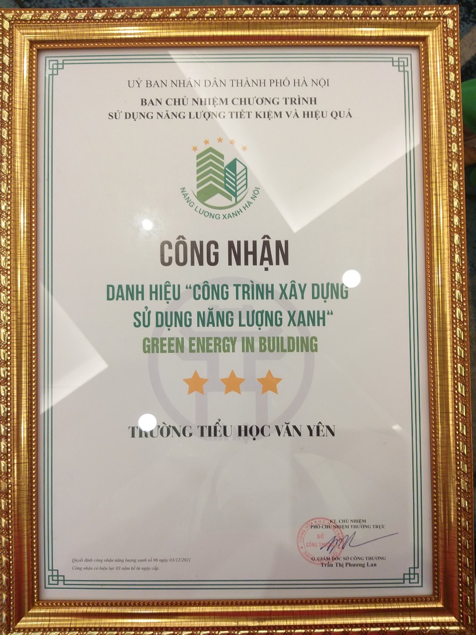 Tiểu học Văn Yên đã, đang và sẽ tiếp tục duy trì và phát triển công trình theo hướng NĂNG LƯỢNG XANH.