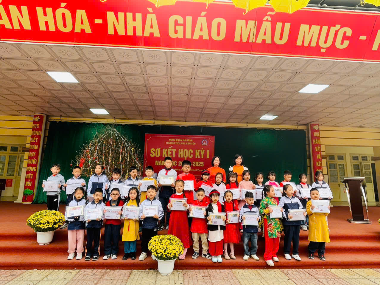 Sáng nay, ngày 20-1-2025, trường Tiểu học Văn Yên đã long trọng tổ chức lễ sơ kết học kỳ I năm học 2024-2025 và trao quà Tết cho học sinh có hoàn cảnh khó khăn.Tham dự buổi lễ có Ban giám hiệu, thầy cô giáo và học sinh trong nhà trường .