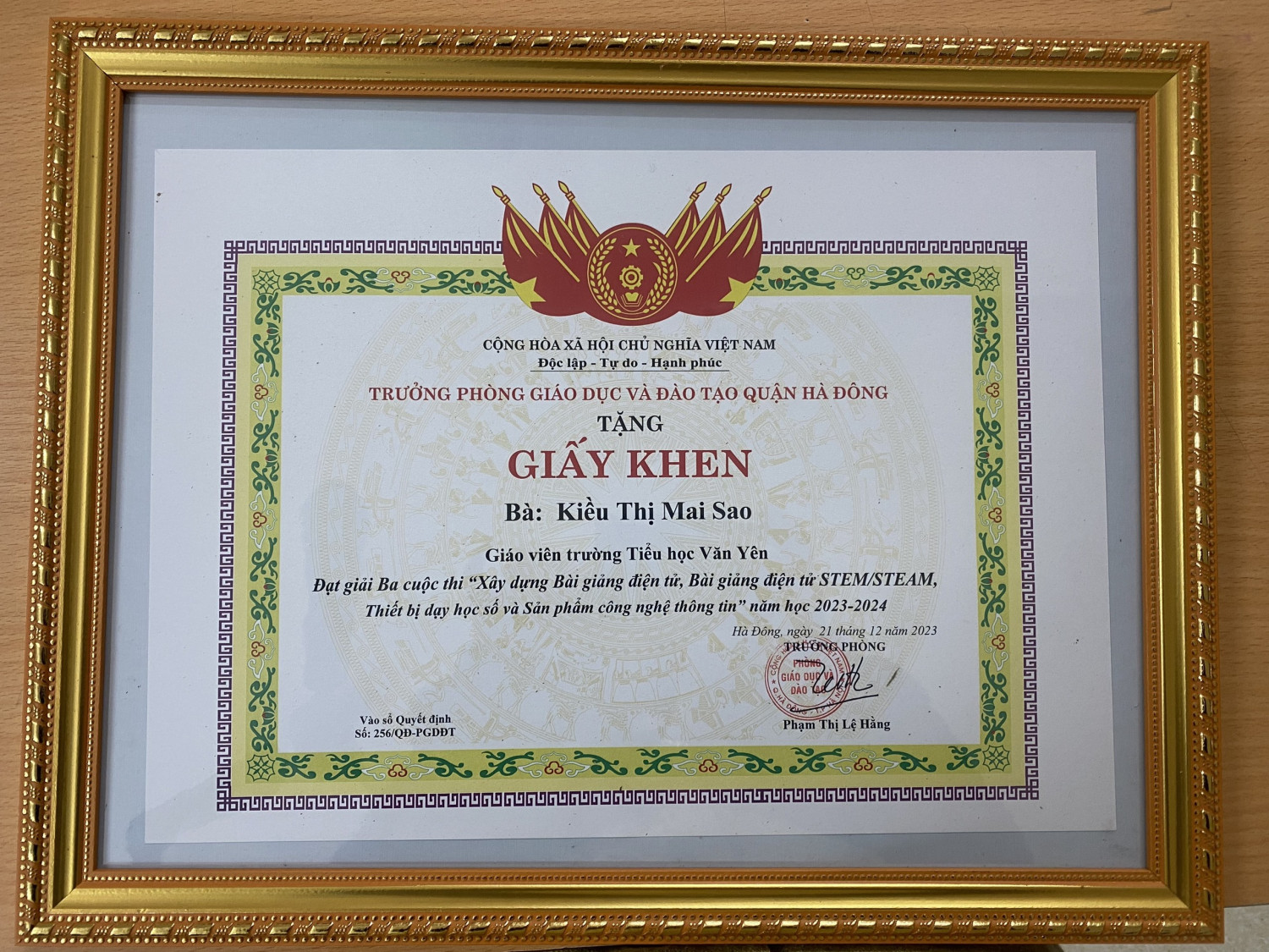 - Cô Kiều Thị Mai Sao đạt giải Ba - Xây dựng Bài giảng điện tử, Bài giảng điện tử STEM, STEAM, Thiết bị dạy học số và Sản phẩm CNTT