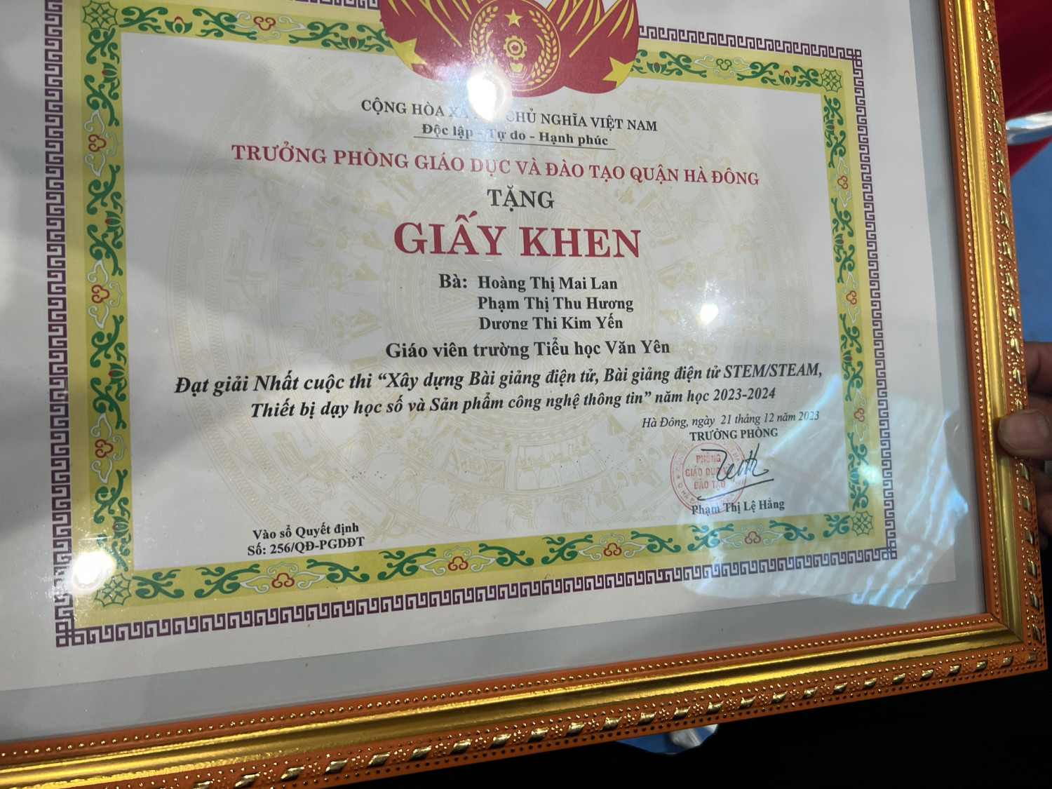 - Cô Hoàng Thị Mai Lan, cô Dương Kim Yến, cô Phạm Thị Thu Hương đạt giải Nhất - Xây dựng Bài giảng điện tử, Bài giảng điện tử STEM, STEAM, Thiết bị dạy học số và Sản phẩm CNTT