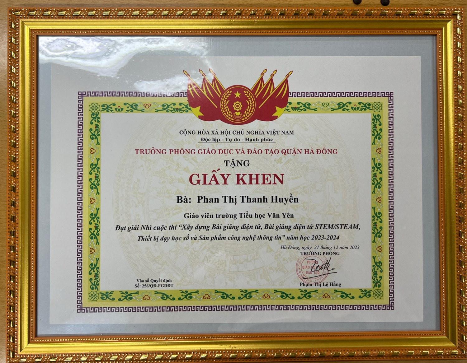 - Cô Phan Thị Thanh Huyền đạt giải Nhì - Xây dựng Bài giảng điện tử, Bài giảng điện tử STEM, STEAM, Thiết bị dạy học số và Sản phẩm CNTT