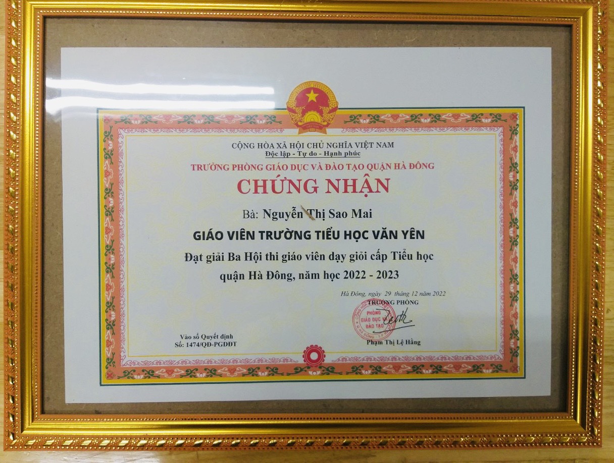 Nhận giải tại Hội thi giáo viên dạy giỏi quận Hà Đông