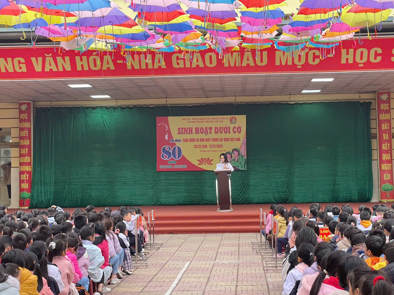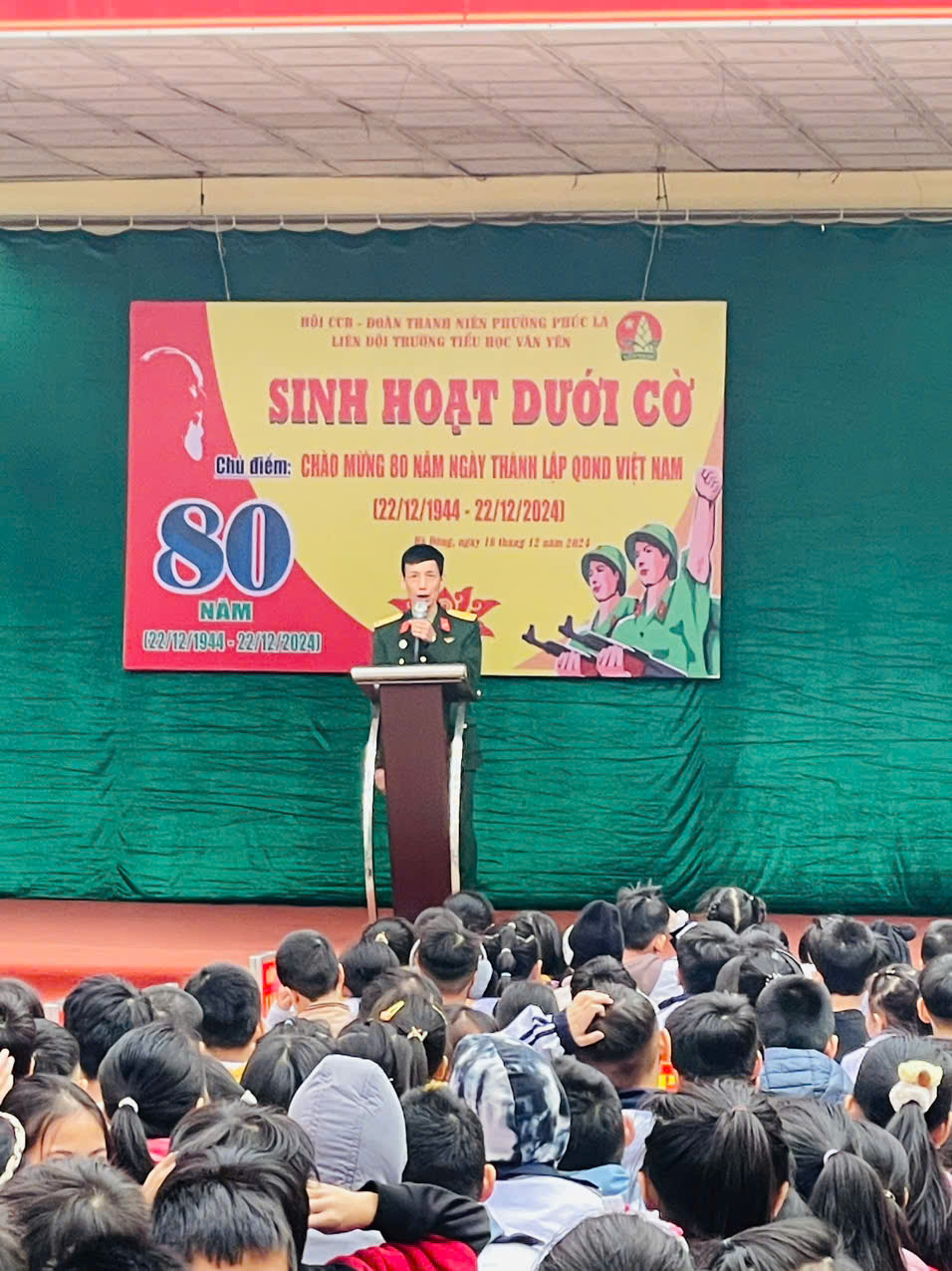 Hôm nay, ngày 16/12/2024, Trường Tiểu học Văn Yên đã long trọng tổ chức tiết sinh hoạt dưới cờ với chủ điểm “Chào mừng 80 năm Ngày thành lập Quân đội nhân dân Việt Nam”.