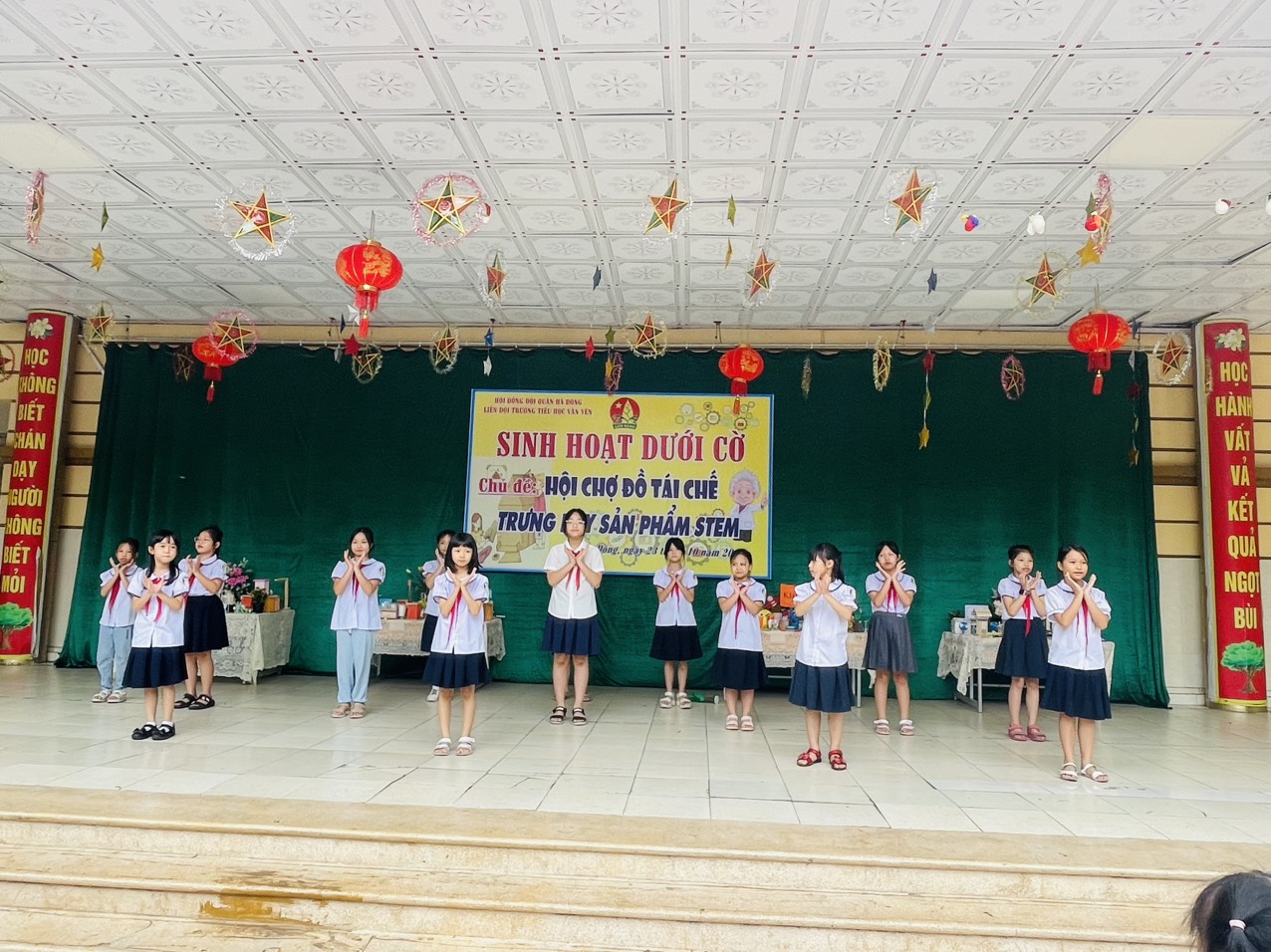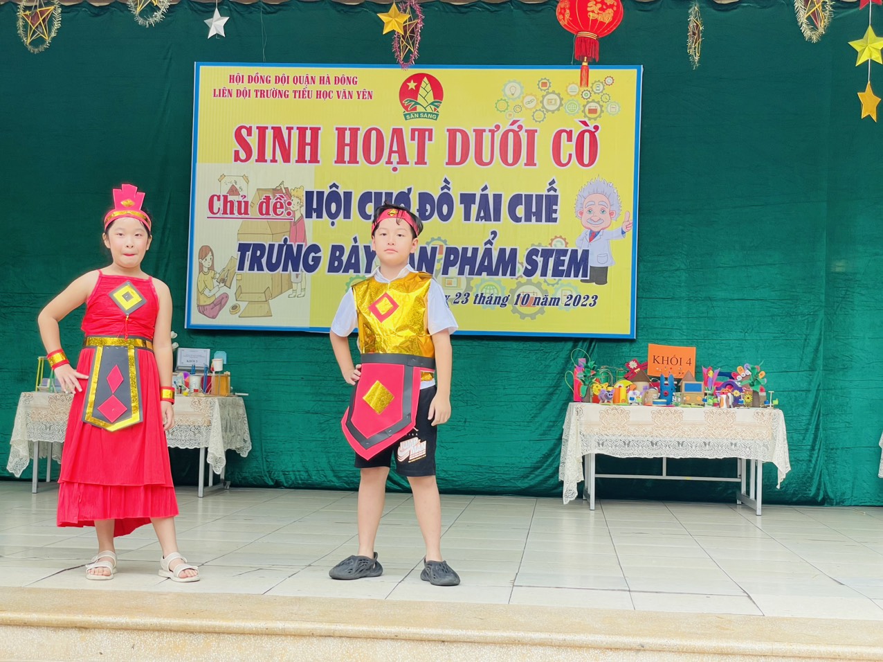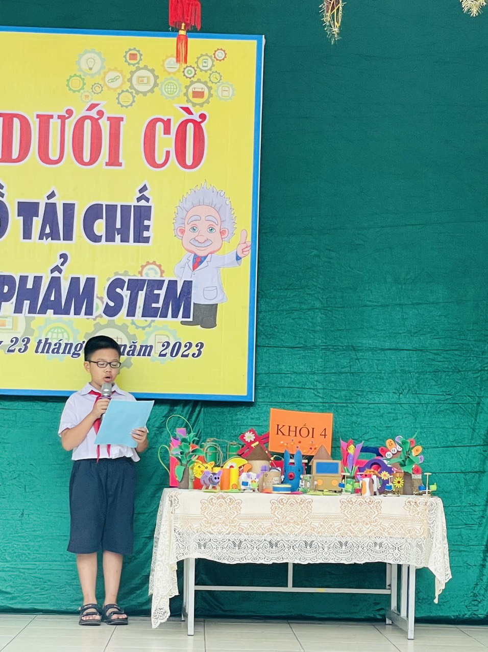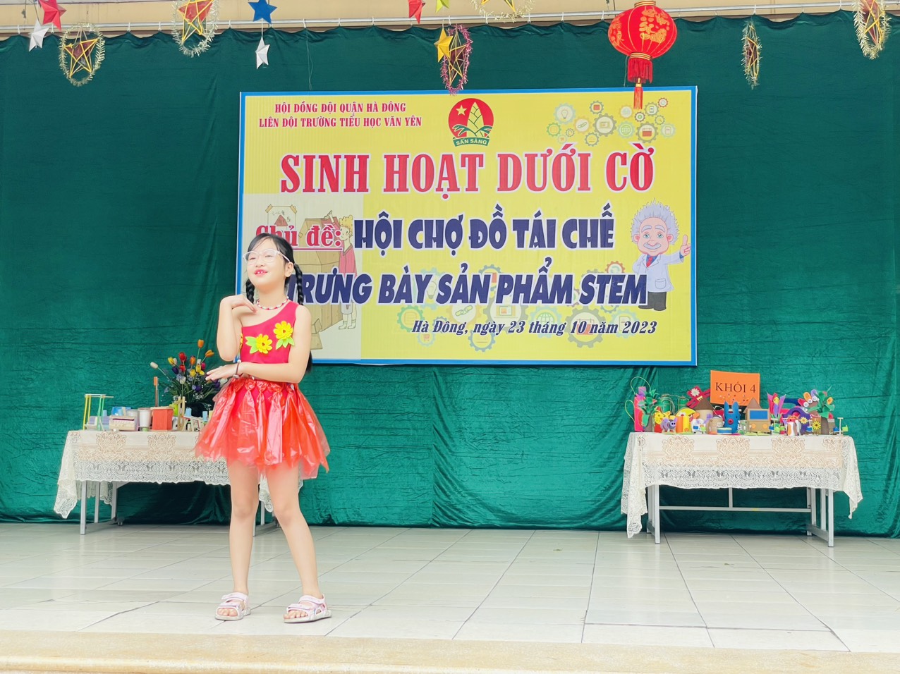 Tiết sinh hoạt dưới cờ với chủ đề: Hội chợ đồ tái chế và trưng bày sản phẩm Stem, hoạt động giúp các em được bộc lộ nhiều năng khiếu tiềm ẩn, rèn luyện nhiều kỹ năng mềm thiết yếu như: tổ chức hoạt động, làm việc nhóm,..., tiết sinh hoạt dưới cờ tổ chức ngoài không gian lớp học mang đến không khí thoải mái, sôi nổi mở đầu tuần học mới.