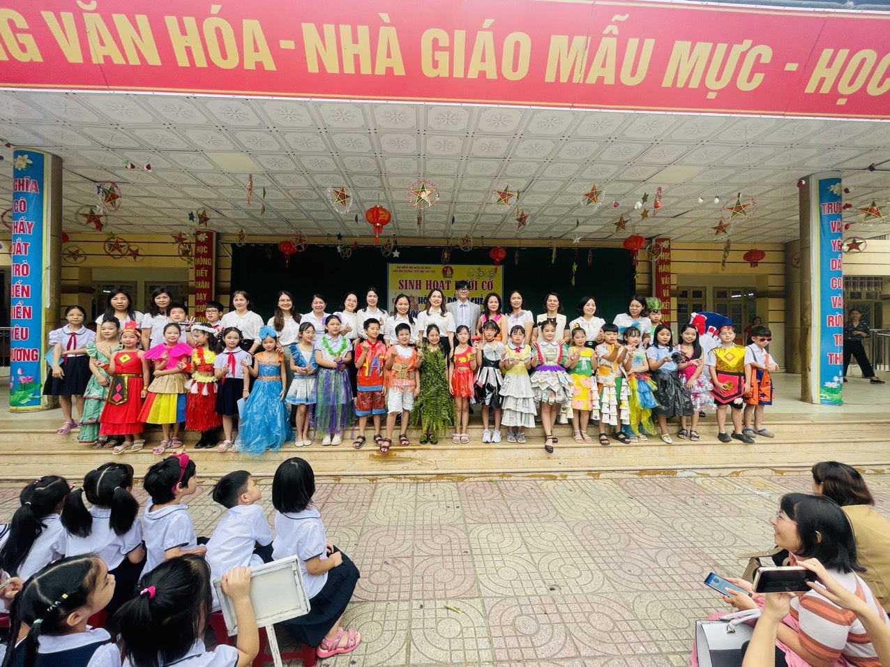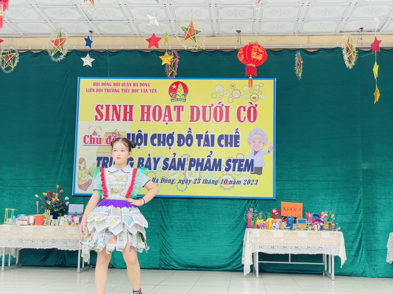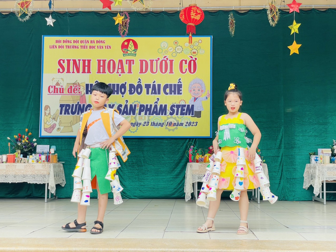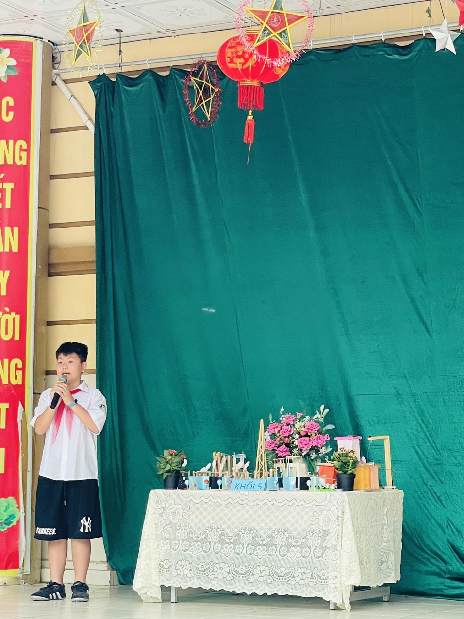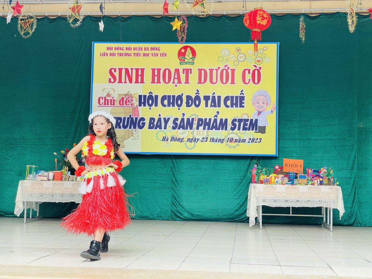 Tiết sinh hoạt dưới cờ với chủ đề: Hội chợ đồ tái chế và trưng bày sản phẩm Stem, hoạt động giúp các em được bộc lộ nhiều năng khiếu tiềm ẩn, rèn luyện nhiều kỹ năng mềm thiết yếu như: tổ chức hoạt động, làm việc nhóm,..., tiết sinh hoạt dưới cờ tổ chức ngoài không gian lớp học mang đến không khí thoải mái, sôi nổi mở đầu tuần học mới.