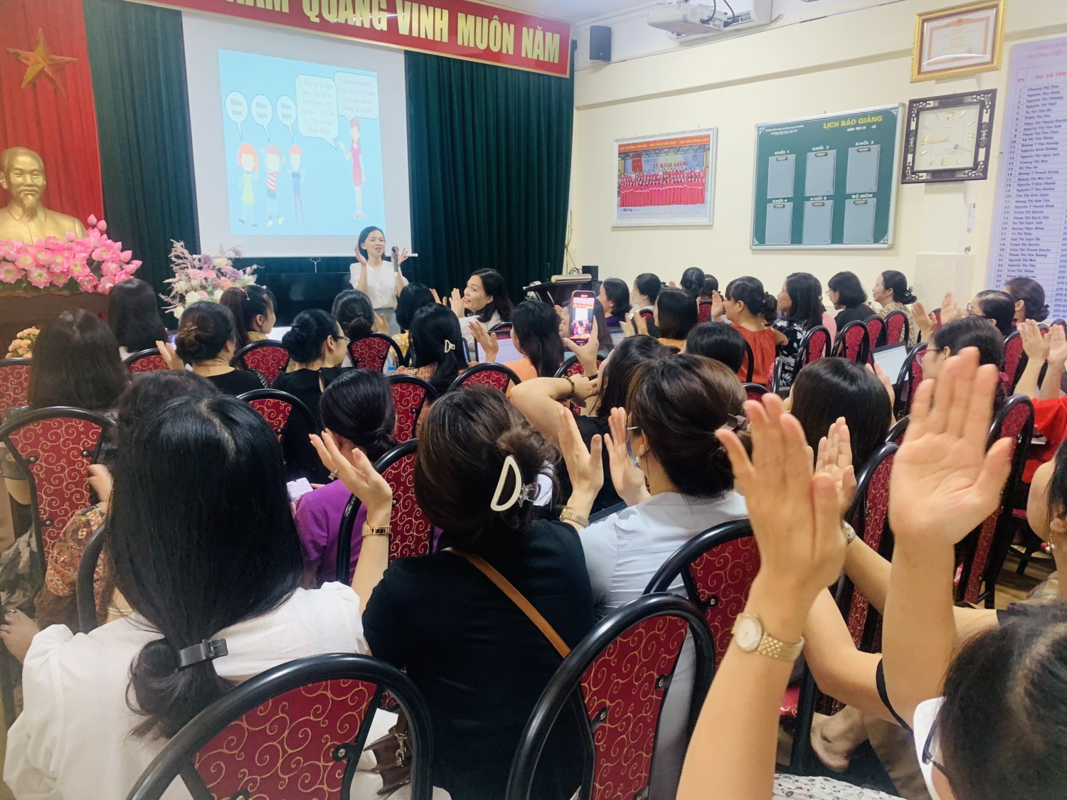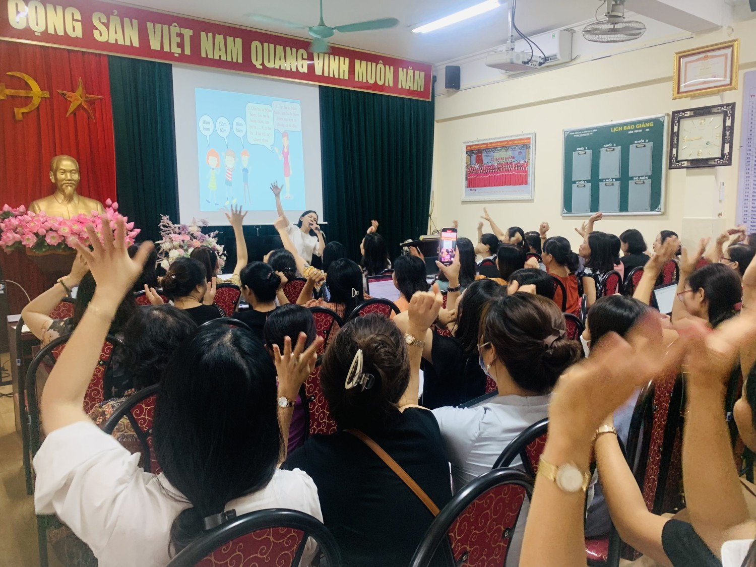 Hôm nay, thứ hai ngày 29 tháng 8 năm 2022. Trường Tiểu học Văn Yên đã tổ chức buổi tập huấn cho các đồng chí giáo viên. Nhà trường đã chủ động mời 2 chuyên gia giỏi đến chia sẻ tại buổi tập huấn.