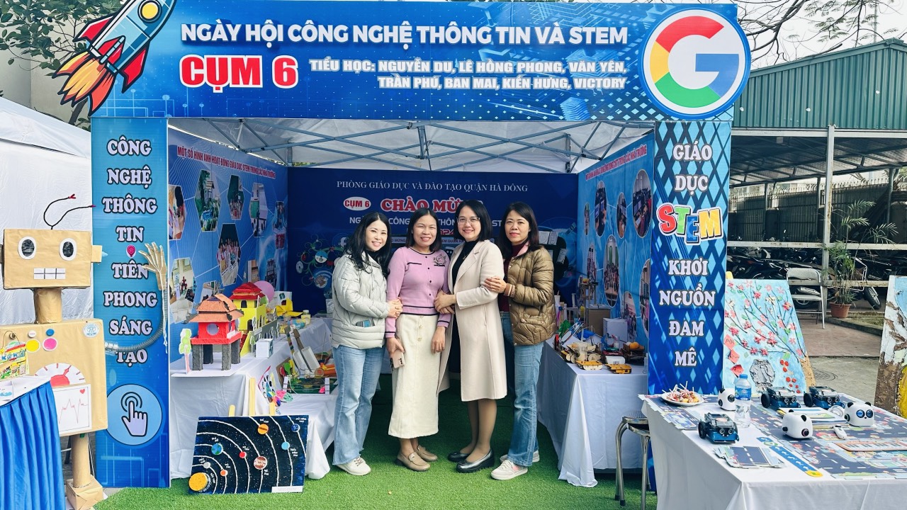 Đến với ngày hội công nghệ thông tin và Stem năm nay. Trường Tiểu học Văn Yên được phân công kết hợp với 5 đơn vị trường học trong phường Phúc La tham gia gian hàng trưng bày các ứng dụng trong CNTT và hoạt động Stem và một vài hoạt động khác trong Kế hoạch tổ chức ngày hội do phòng Giáo dục và đào tạo quận Hà Đông tổ chức.