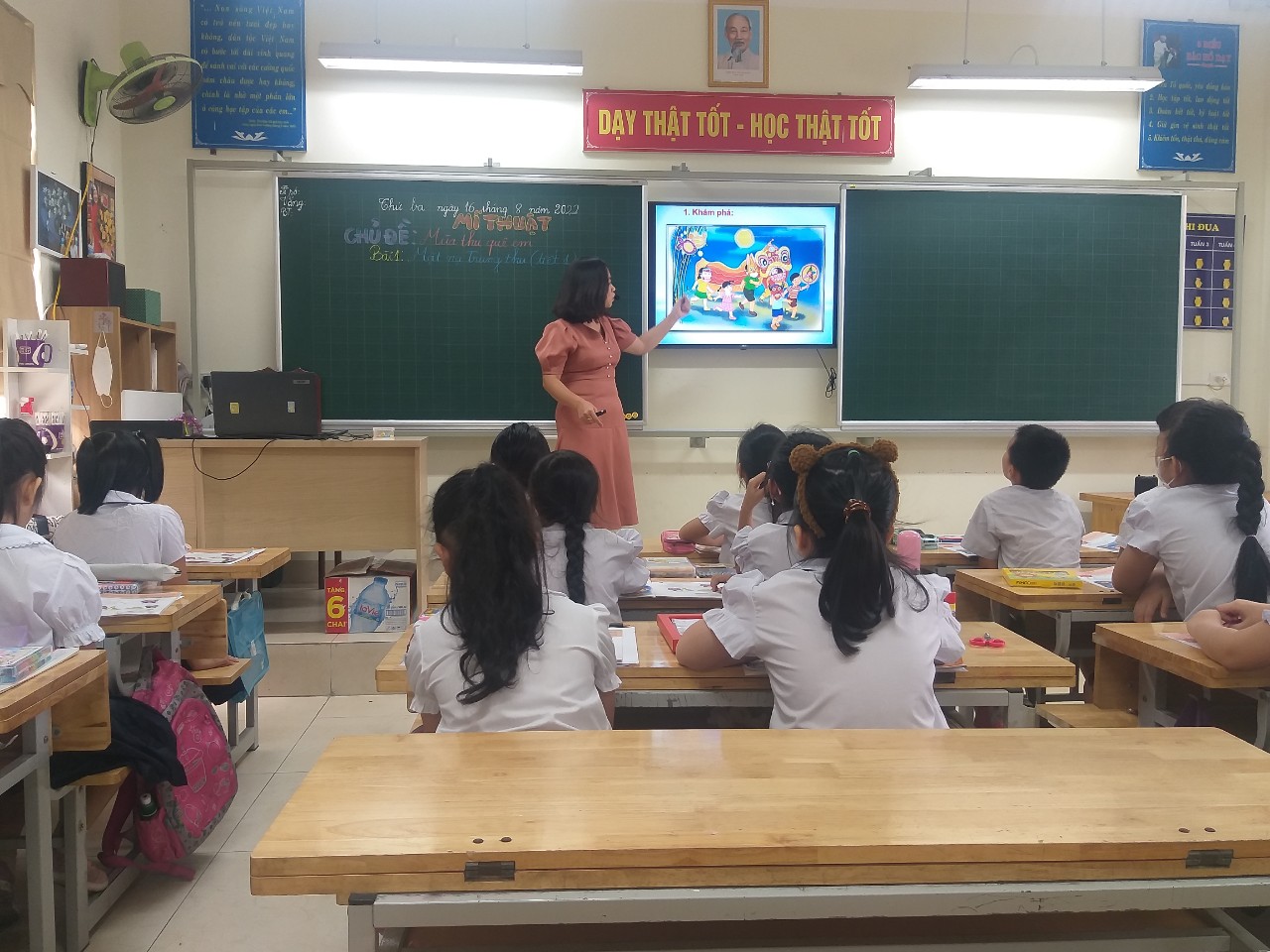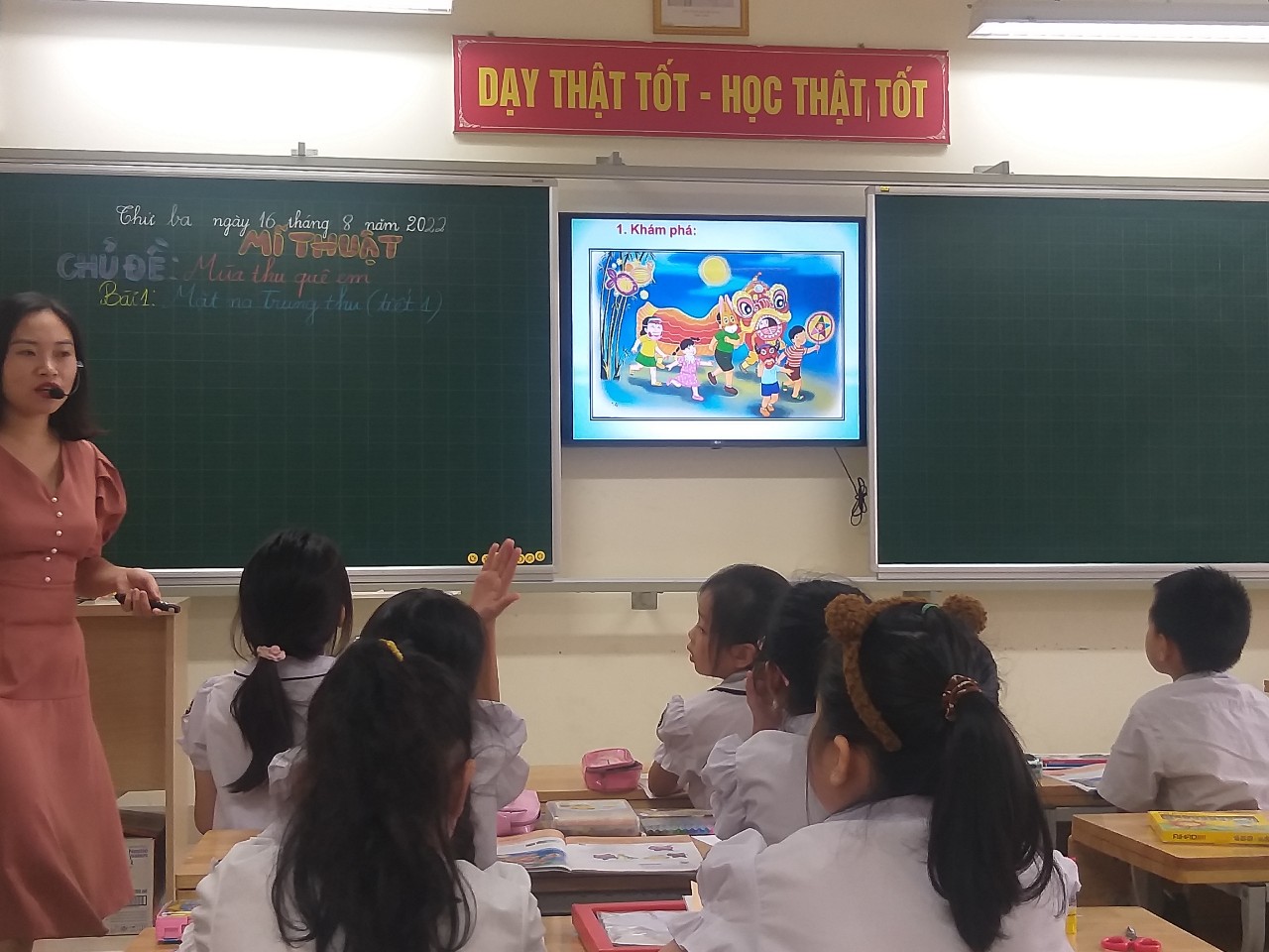 Với khả năng sử dụng hiệu quả đồ dùng dạy học và kĩ năng sử dụng thành thạo công nghệ thông tin, tiết Mĩ thuật của lớp 3A8 do cô giáo Nguyễn Thị Sao Mai thực hiện diễn ra sôi nổi. Mặc dù là giáo viên trẻ nhưng cô Mai đã kết hợp, phát huy tốt những ưu điểm của phương pháp dạy học truyền thống và phương pháp dạy học hiện đại trong việc dẫn dắt, gợi mở để học sinh chủ động tiếp cận kiến thức. Học sinh hào hứng, chủ động tiếp thu bài học hiệu quả.