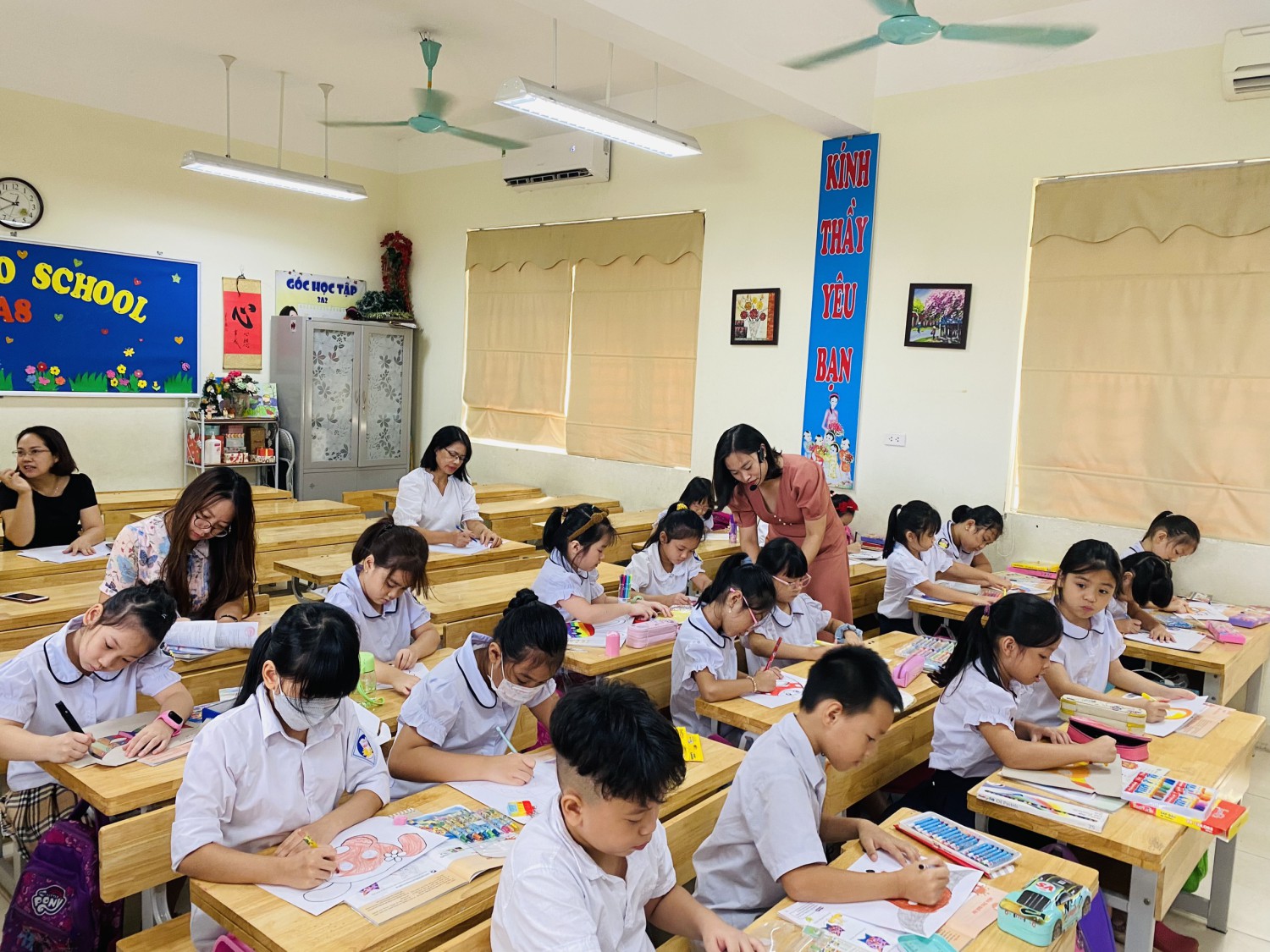 Thầy cô giáo là người thắp lửa và truyền cảm hứng cho học sinh thông qua các tiết học để các con hào hứng, chủ động nắm bắt kiến thức.Với mong muốn đem đến những tiết dạy hay, hiệu quả và thú vị cho học sinh. Hôm nay, thứ 3 ngày 16/8/2022, tại phòng học lớp 3A8 Trường Tiểu học Văn Yên đã thực hiện dạy tiết chuyên đề Mĩ thuật, tới dự tiết chuyên đề có 02 cô phó hiệu trưởng nhà trường : cô giáo Nguyễn Thu Oanh, cô giáo Nguyễn Thị Phượng, một số cô giáo trong nhà trường và các em học sinh thân yêu lớp 3A8.