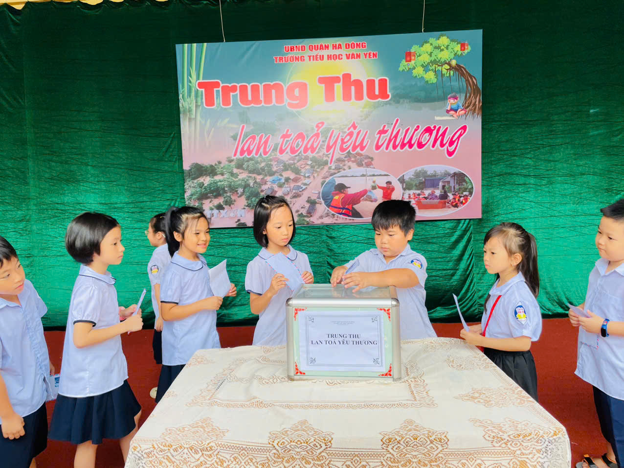 Điều đặc biệt, năm nay, trường Tiểu học Văn Yên không tổ chức liên hoan Trung thu cho học sinh với các tiết mục phá cỗ vui nhộn như mọi năm. Nhà trường kêu gọi giáo viên, phụ huynh, học sinh các lớp dành kinh phí ấy để sẻ chia với đồng bào đang chịu nhiều đau thương, mất mát do mưa lũ.