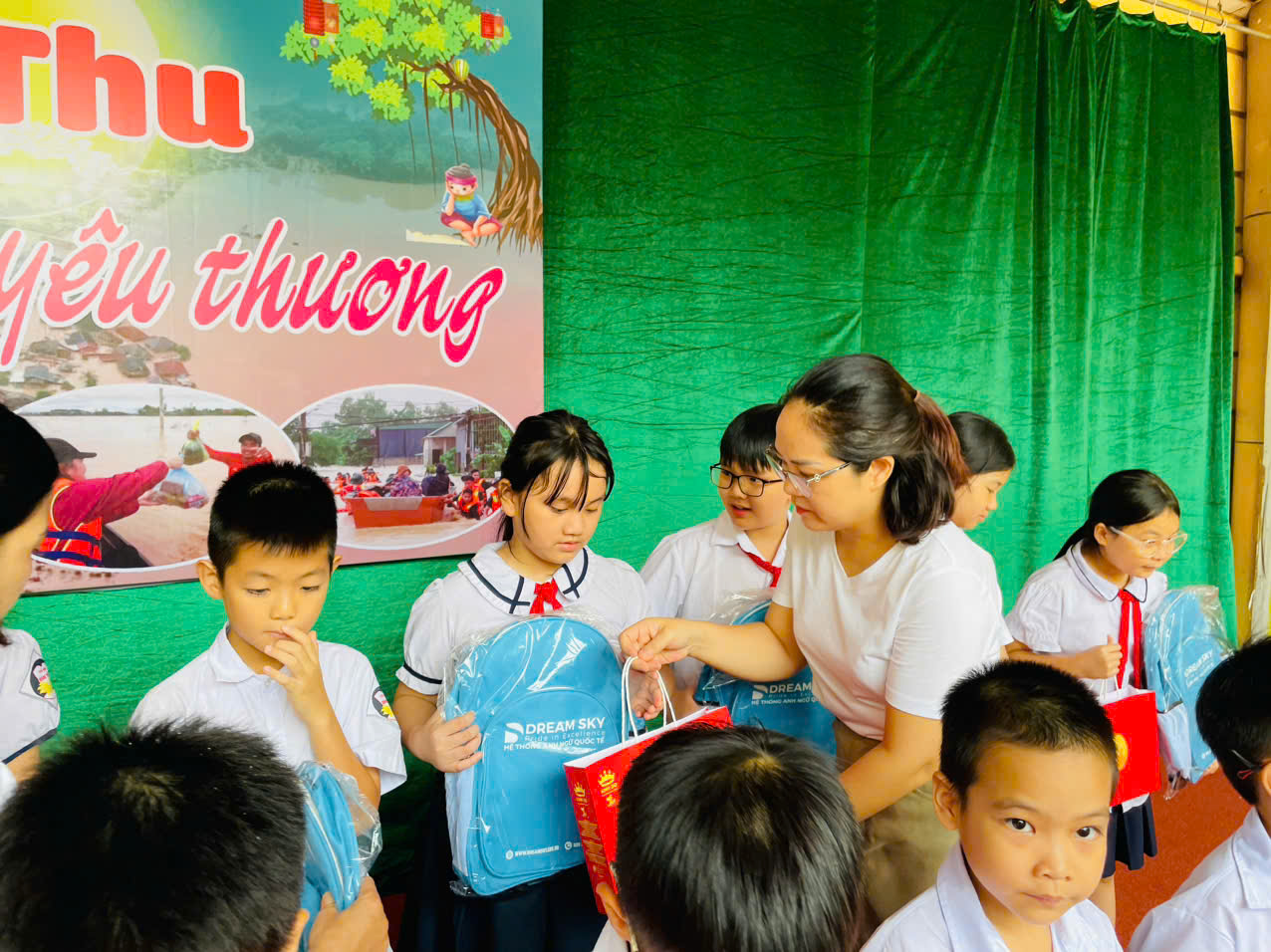 Dịp này, nhà trường tặng quà cho 27 học sinh có hoàn cảnh khó khăn, gia đình chịu ảnh hưởng nặng nề do cơn bão số 3 và bị ngập lụt.