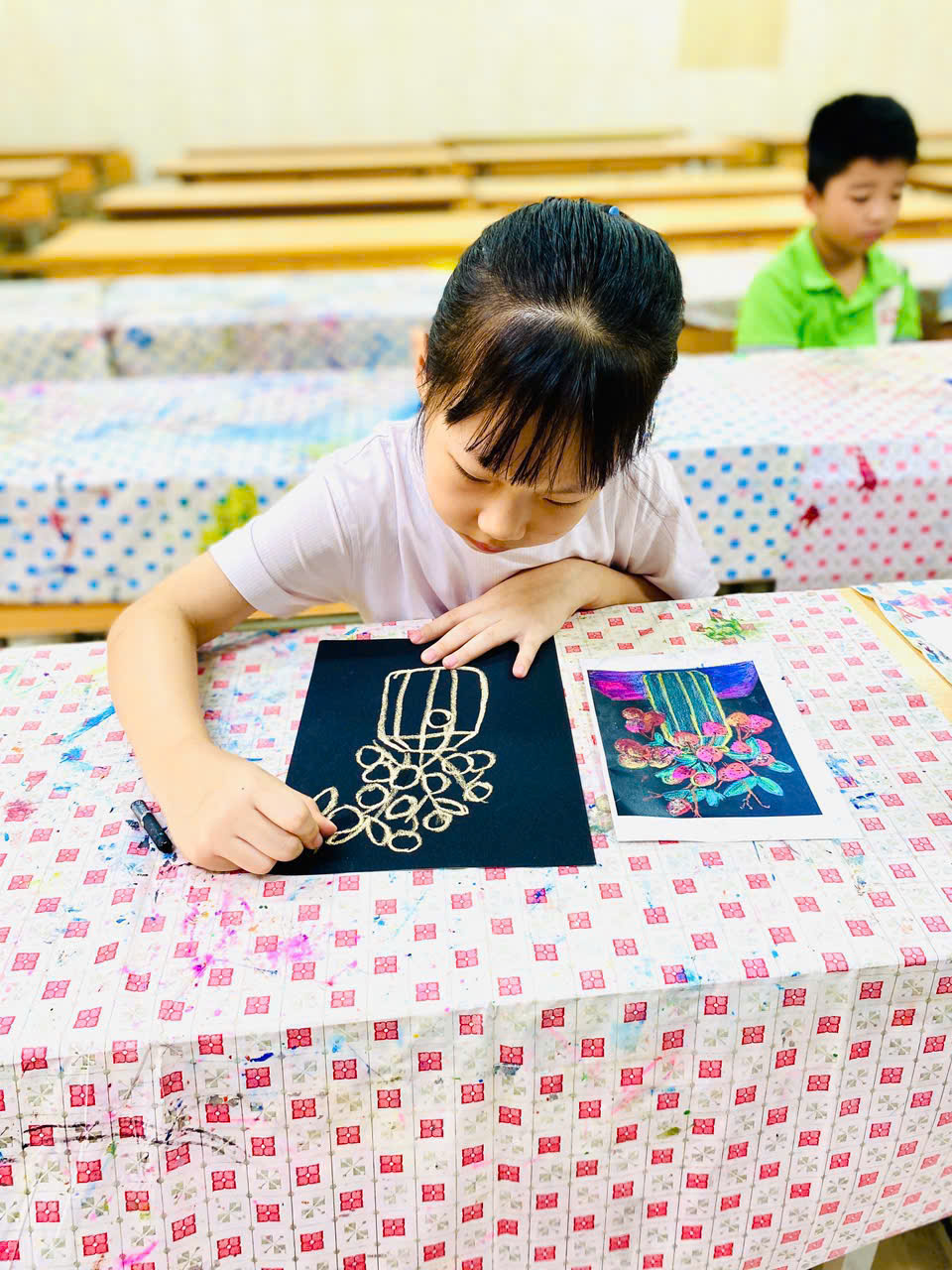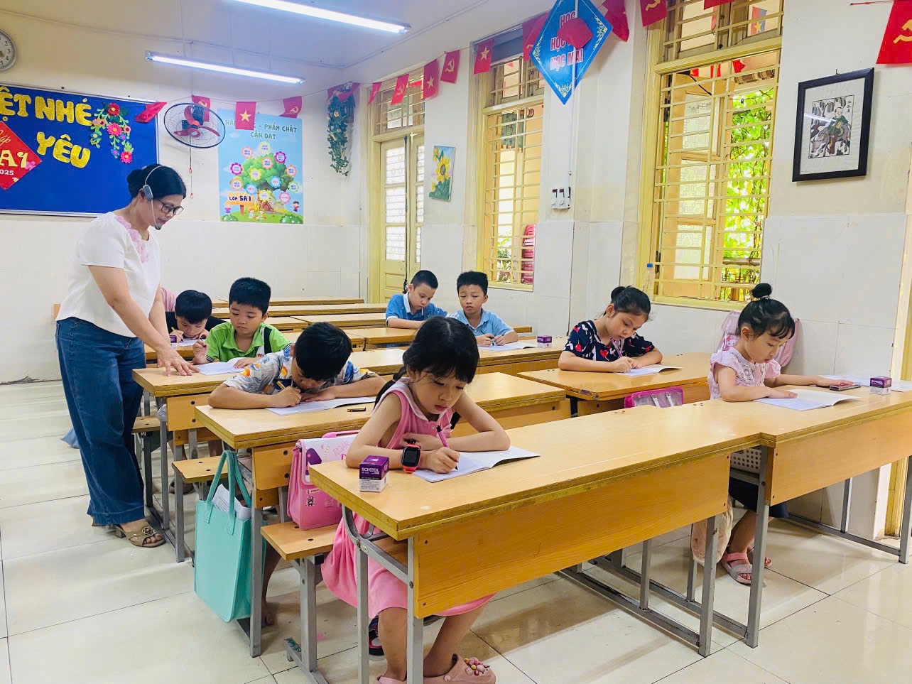 Ngay từ buổi học đầu tiên, các em học sinh đã được hòa mình vào không khí sôi nổi, hào hứng với các hoạt động như mỹ thuật, luyện chữ đẹp, nhảy Zumba,…