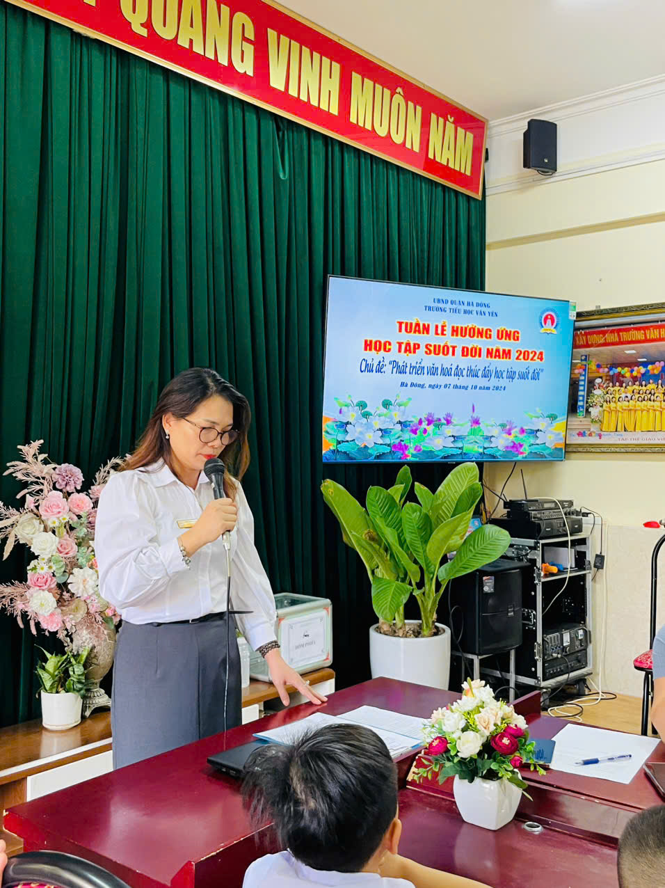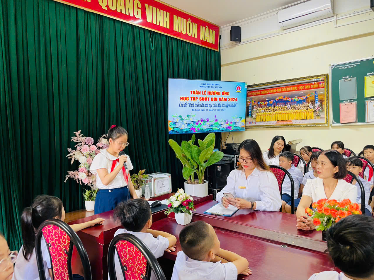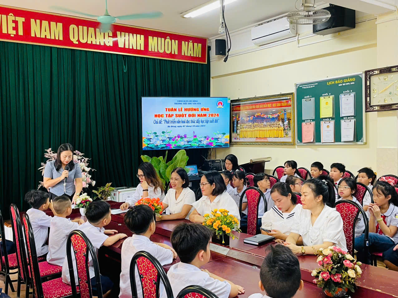 Sáng ngày 7-10-2024, Trường Tiểu học Văn Yên đã long trọng tổ chức buổi lễ hưởng ứng Tuần lễ học tập suốt đời năm 2024 với chủ đề “Phát triển văn hóa đọc, thúc đẩy học tập suốt đời”. Sự kiện nhằm nâng cao nhận thức của học sinh toàn trường về tầm quan trọng của việc duy trì thói quen học tập, đọc sách suốt đời.