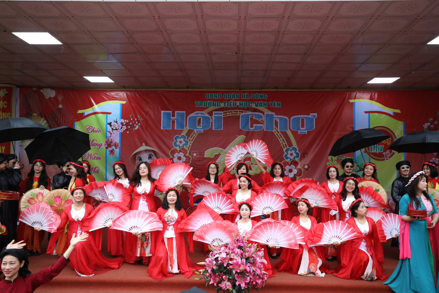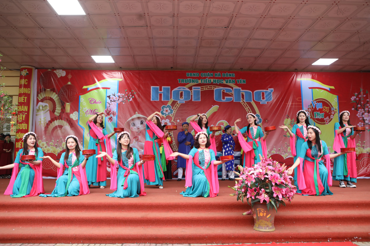 Mở đầu hội chợ là phần khai mạc đầy ấn tượng, với sự tham gia của các thầy cô và học sinh trong các chương trình văn nghệ đặc sắc. Những màn múa truyền thống, hòa cùng tiếng hát, tiếng nhạc vui tươi đã tạo nên không khí đón Xuân ấm áp, vui vẻ. Các hoạt động sôi nổi này giúp học sinh hiểu rõ hơn về những giá trị văn hóa truyền thống và tình yêu quê hương đất nước.