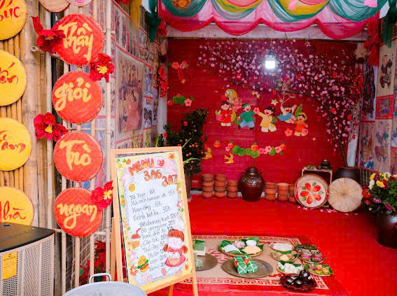 Năm nay, hội chợ có 20 gian hàng, được trang trí độc đáo, đẹp mắt và mang đậm nét thuần phong mỹ tục, thể hiện sự sáng tạo và công sức của các lớp học sinh. Các gian hàng bày bán những sản phẩm thủ công, đặc sản quê hương, mang đậm phong vị Tết như bánh chưng, mứt Tết, hoa quả, đồ handmade và nhiều món quà đặc trưng khác. Mỗi gian hàng đều thể hiện sự chăm chút và tình yêu dành cho truyền thống văn hóa dân tộc.