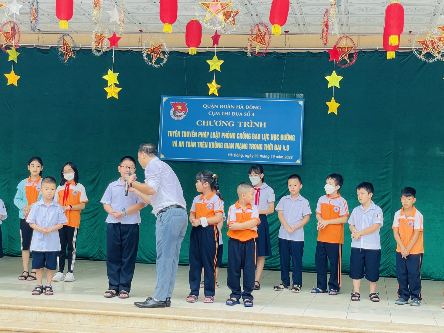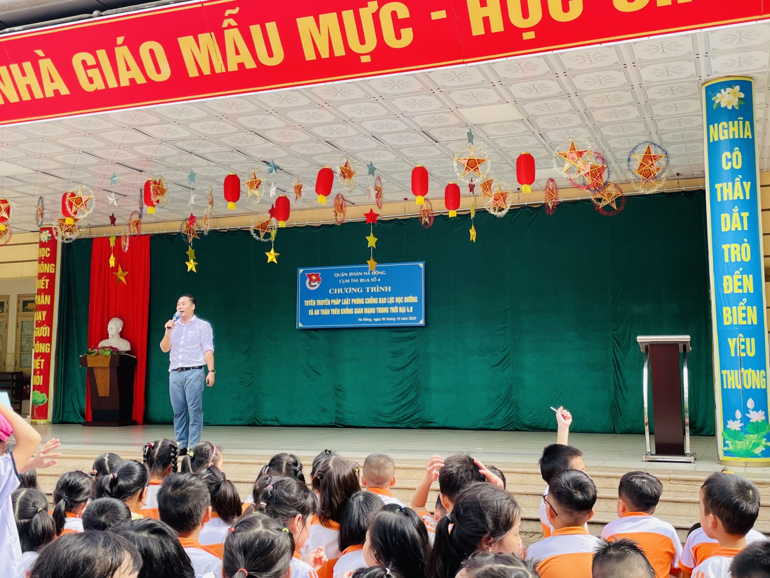 Sáng hôm nay, ngày 03/10,Thầy Nguyễn Như Hoan - Giáo viên trường Đội Lê Duẩn đã có buổi tuyên truyền cho hơn 3.000 học sinh trường Tiểu học Văn Yên về: “phòng chống bạo lực bạo lực học đường và an toàn trên không gian mạng trong thời đại 4.0”. Với những bài hát vui vẻ, ý nghĩa, những trò chơi mang tính gắn kết, yêu thương, những bộ câu hỏi chi tiết và đầy đủ về cách phòng, chống bạo lực học đường, đã làm học sinh toàn trường rất háo hứng, tập trung lắng nghe những chia sẻ của thầy. Không khí vui tươi, vừa chơi, vừa học, giúp các em làm quen dần với những quy định của pháp luật và biết được kỹ năng phòng, chống bạo lực học đường. Buổi tuyên truyền kết thúc đã góp phần nâng cao kỹ năng, tạo mội trường lành mạnh trong học đường để học sinh tránh xa những cái xấu, tập trung học tập và toàn diện hơn về thể chất cũng như tinh thần.