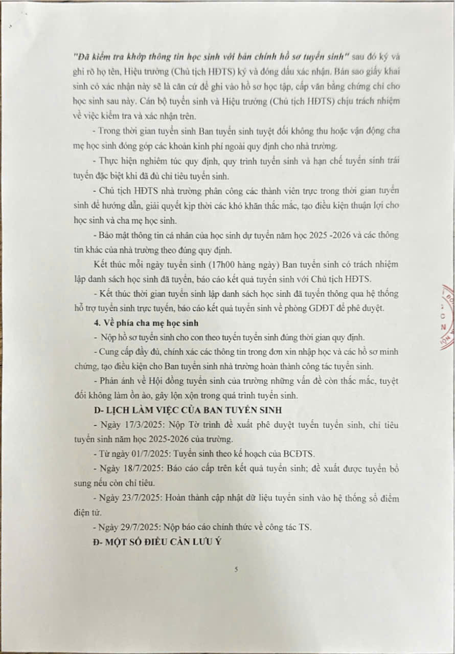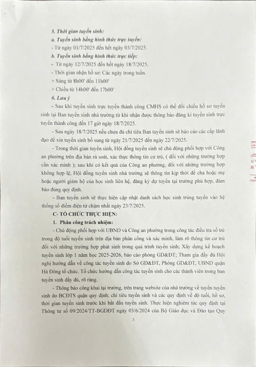 Kế hoạch tuyển sinh lớp 1 năm học 2025-2026