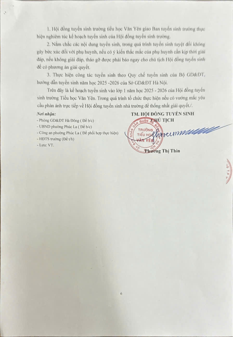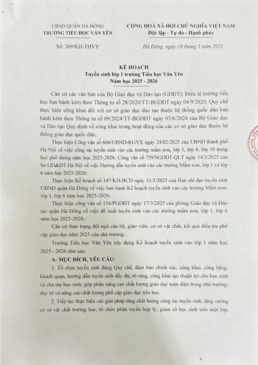 Trường Tiểu học Văn Yên xin gửi tới Quý phụ huynh học sinh Kế hoạch tuyển sinh lớp 1 năm học 2025-2026 của Nhà trường.